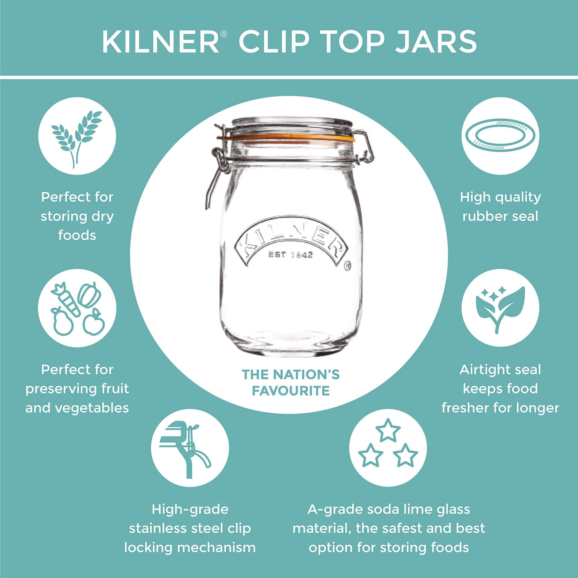 ✅ ZRÓWNOWAŻONE SZKŁO |: ZRÓWNOWAŻONE SZKŁO | Szkło Kilner jest wykonane z naturalnych składników, dzięki czemu żadne szkodliwe chemikalia ani toksyny nie mogą przedostać się do żywności, szkło nie zawiera BPA i nie wchłania zapachów, aromatów ani plam, jest nie tylko zdrowszym rozwiązaniem, ale jest również stworzone tak,