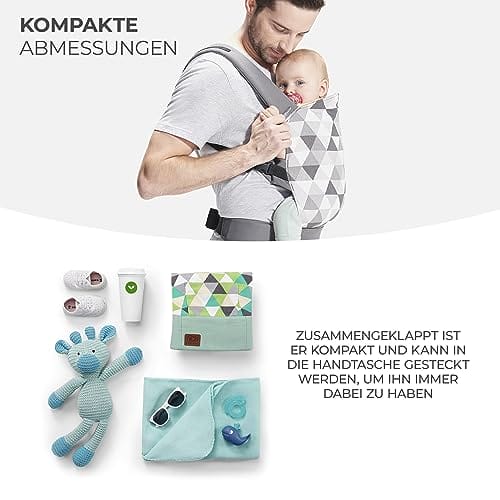 • ✅ PRAKTYCZNE: NINO ma specjalną kieszonkę na drobiazgi, znajdującą się z przodu. Rodzic może swobodnie schować tam klucze czy telefon. Na klamrach znajdują się osłonki, które zwiększają wygodę noszenia.