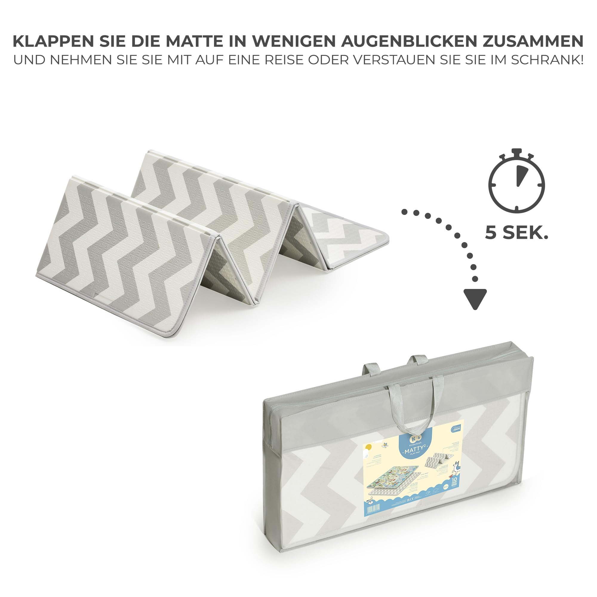 ✅ ✅ DO DOMU: ✅ DO DOMU I NA ZEWNĄTRZ: mata dla dzieci MATTY 2 ma grubość 1,2 cm, dzięki czemu bardzo dobrze izoluje od podłogi – w domu i na zewnątrz. Możesz korzystać z maty na balkonie, tarasie albo w ogrodzie. Łatwo ją złożyć, a w zestawie znajduje się torba podróżna.
