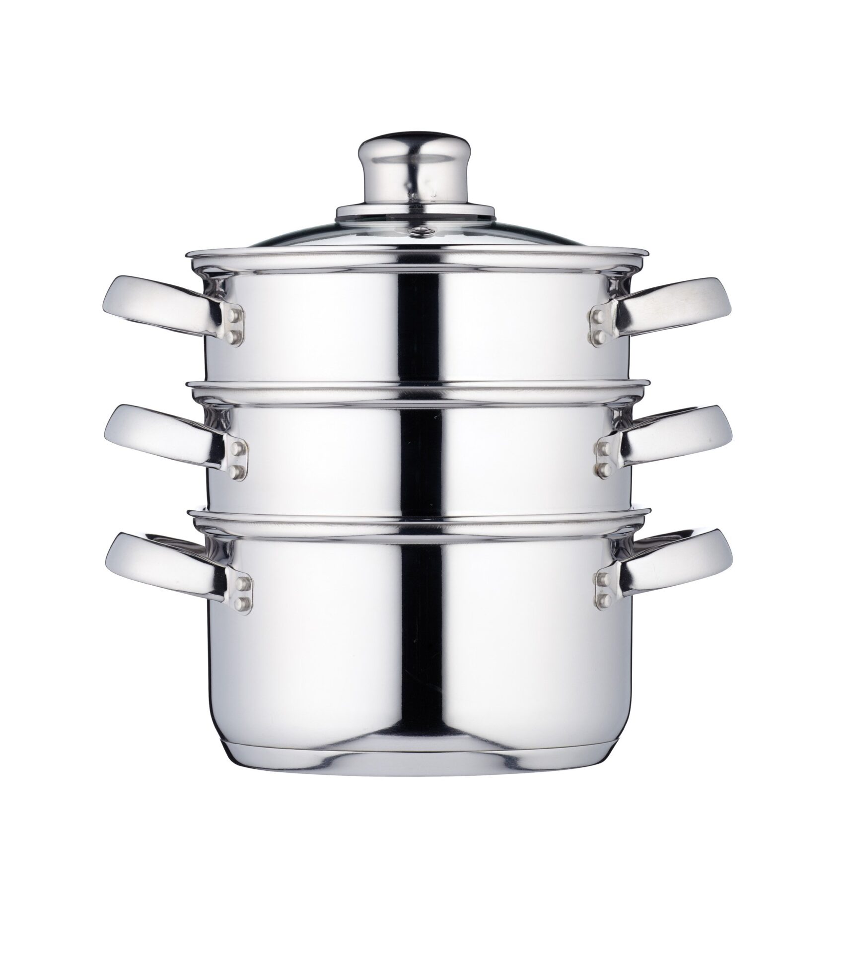 KitchenCraft Zestaw 3 garnków, parowar/garnek do zupy, 3-stopniowy, z zabezpieczeniem indukcyjnym, stal nierdzewna, w pudełku prezentowym, 16 cm (6″), srebrny