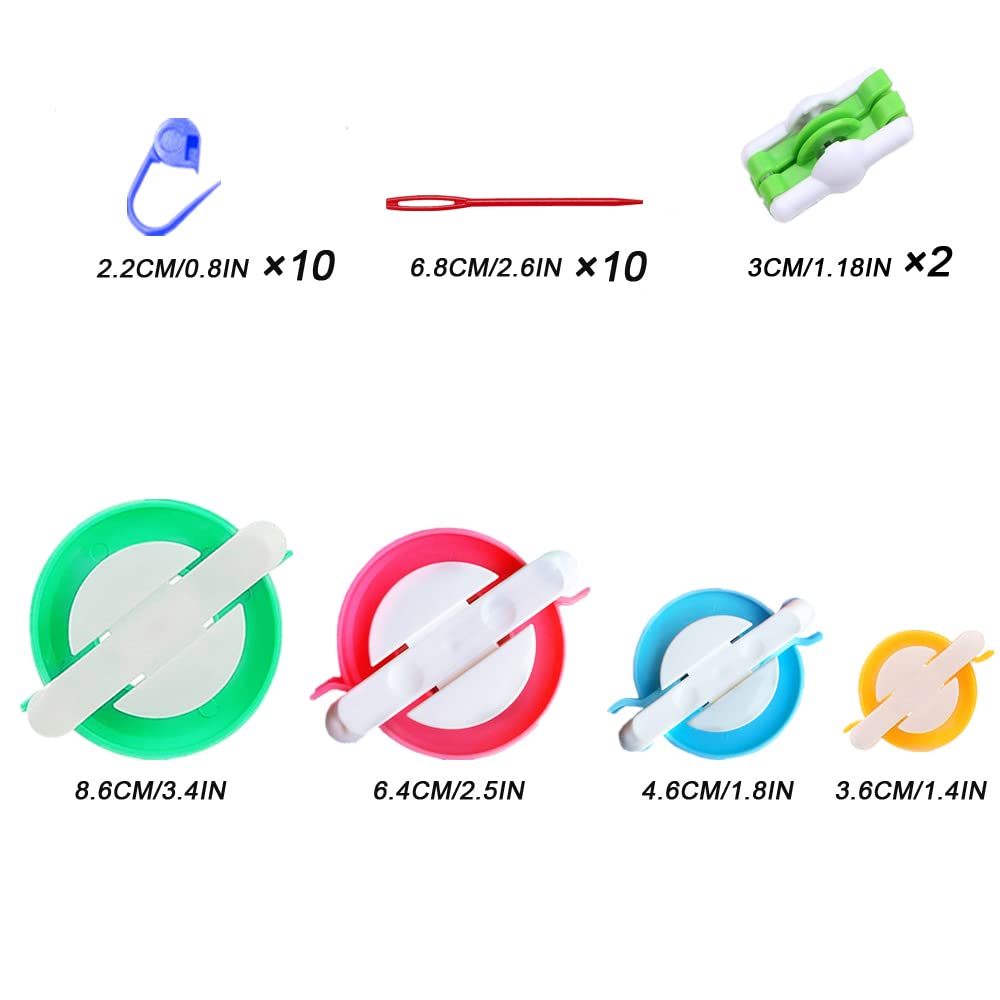 maszyna do robienia pomponów (6 szt., 5 rozmiarów), markerów do ściegu dziewiarskiego (10 szt.), igieł plastikowych (10 szt.) maszyna do robienia pomponów (6 szt., 5 rozmiarów), markerów do ściegu dzi