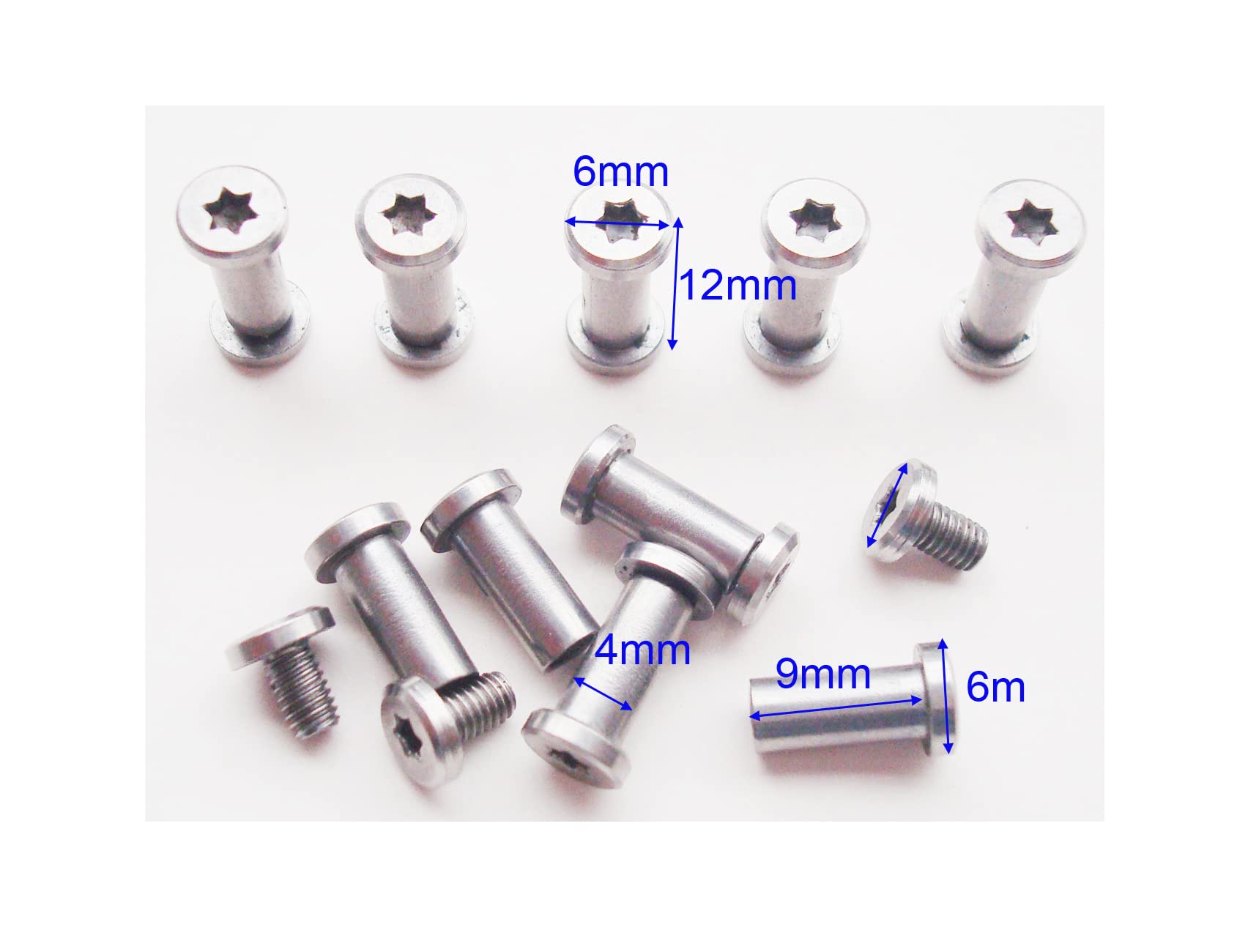 Rozmiar: średnica główki:: Rozmiar: średnica główki: 6 mm (0,236″); średnica wału: 4 mm (0,157″), długość śruby: 9 mm (0,35″), długość całkowita: 12 mm (0,47″)
