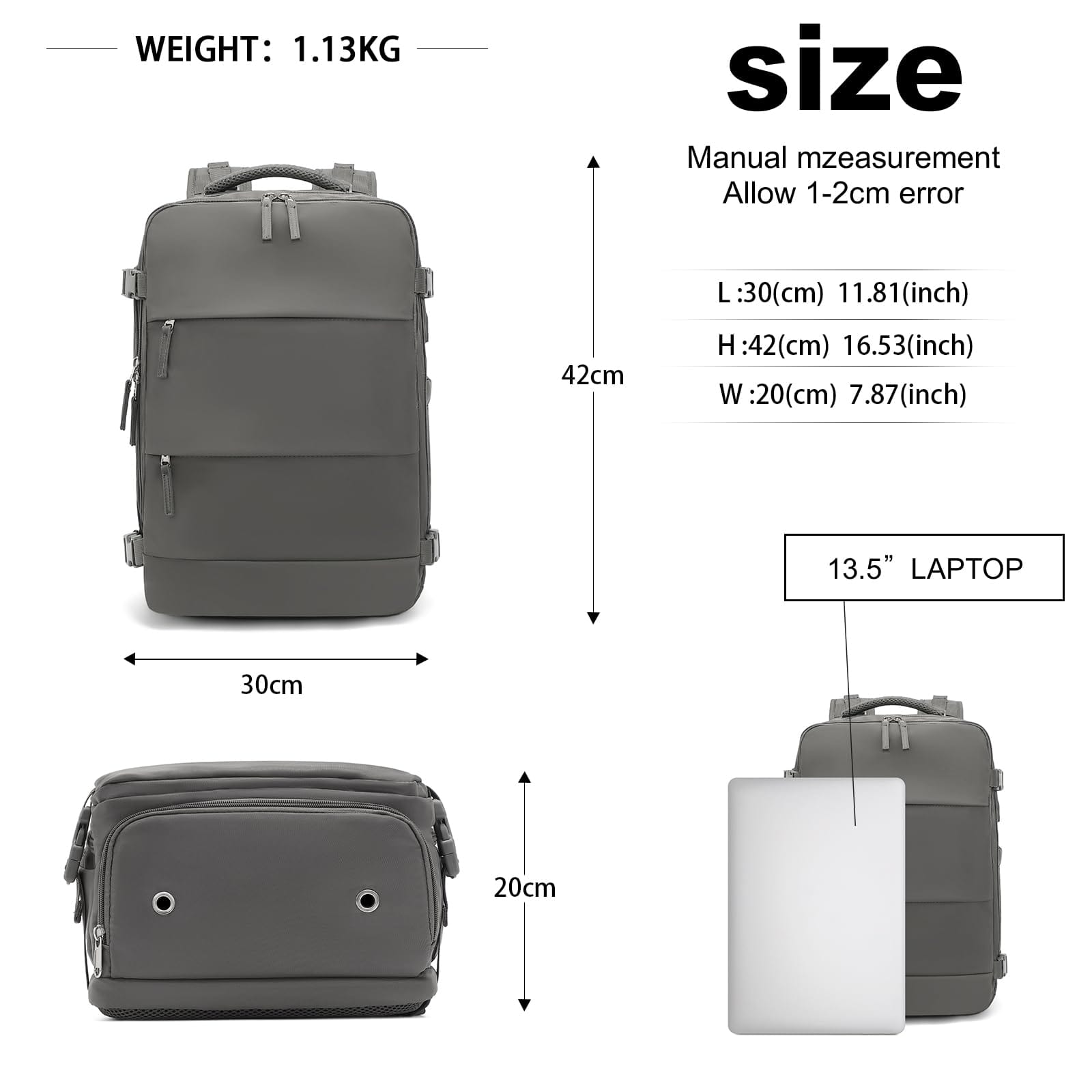 – Idealny rozmiar dla podróżnego plecaka: Wymiary: 42 x 30 x 20 cm, 25 litrów. Ten plecak podróżny spełnia wymagania EasyJet dotyczące bagażu podręcznego i doskonale pasuje pod siedzenie jako torba kabinowa w samolocie bez dodatkowych opłat. Główna komora otwiera się na 180° jak walizka, ułatwiając pakowanie i przyspieszając kontrole bezpieczeństwa. Dzięki paskom kompresyjnym boczne, po spakowaniu, można zmniejszyć rozmiar, idealny jako mały bagaż podręczny do podróży lotniczych.