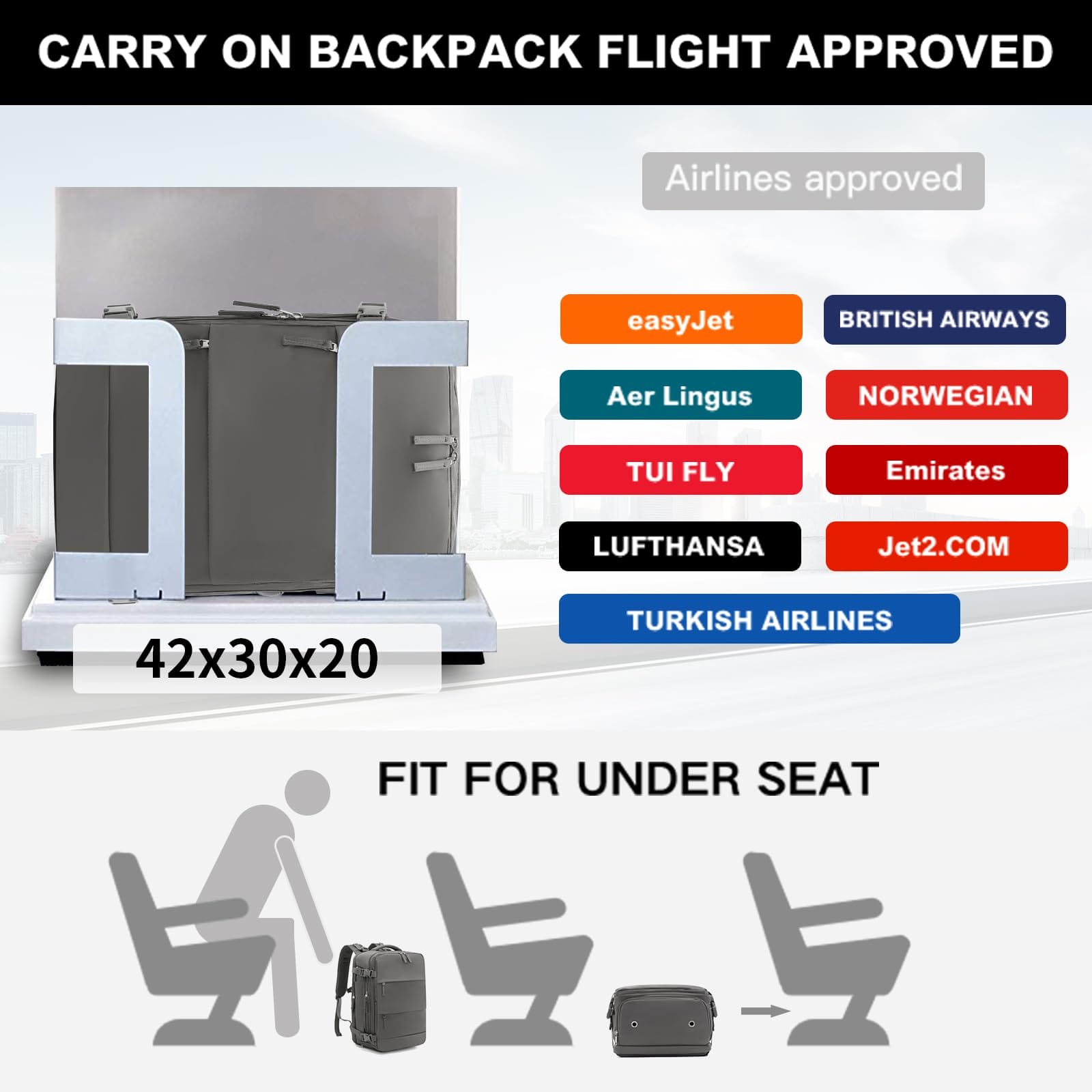 Kono Torba kabinowa 42x30x20 cm do Easyjet | 25 l | Wodoodporna torba podręczna bagaż podręczny plecak na laptopa z portem ładowania USB i kieszenią na buty