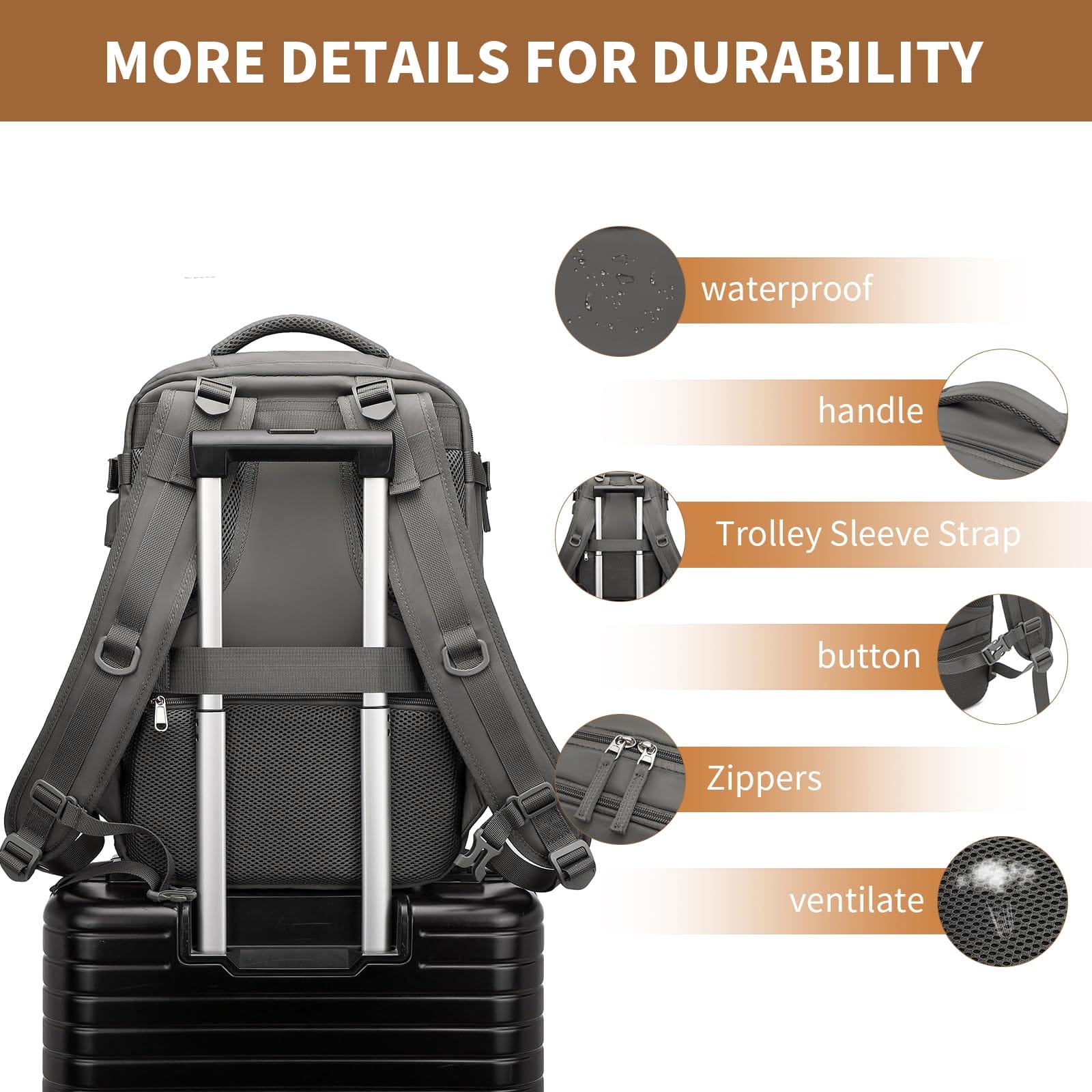 – Wygodny i trwały: Ten lekki plecak wykonany jest z wysokiej jakości, wodoodpornego i wytrzymałego nylonu, posiada solidne zamki błyskawiczne i wzmocnione szwy. Wyściełane szelki z pianką i oddychający materiał na plecach zapewniają ergonomiczny komfort noszenia. Pasek piersiowy odciąża ramiona i zapobiega zsuwaniu się pasków. Z paskiem na wózek do przymocowania do walizki, aby mieć wolne ręce.