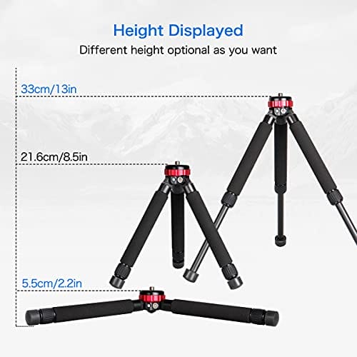 ✅ 【Dwie wysokości robocze】: 【Dwie wysokości robocze】 Nogi statywu są regulowane za pomocą czerwonego obrotowego kołnierza, który umożliwia 2 różne rodzaje wysokości roboczych: maksymalna wysokość robocza 33 cm / 13 cali i minimalna wysokość robocza 5 cm / 2 cale.