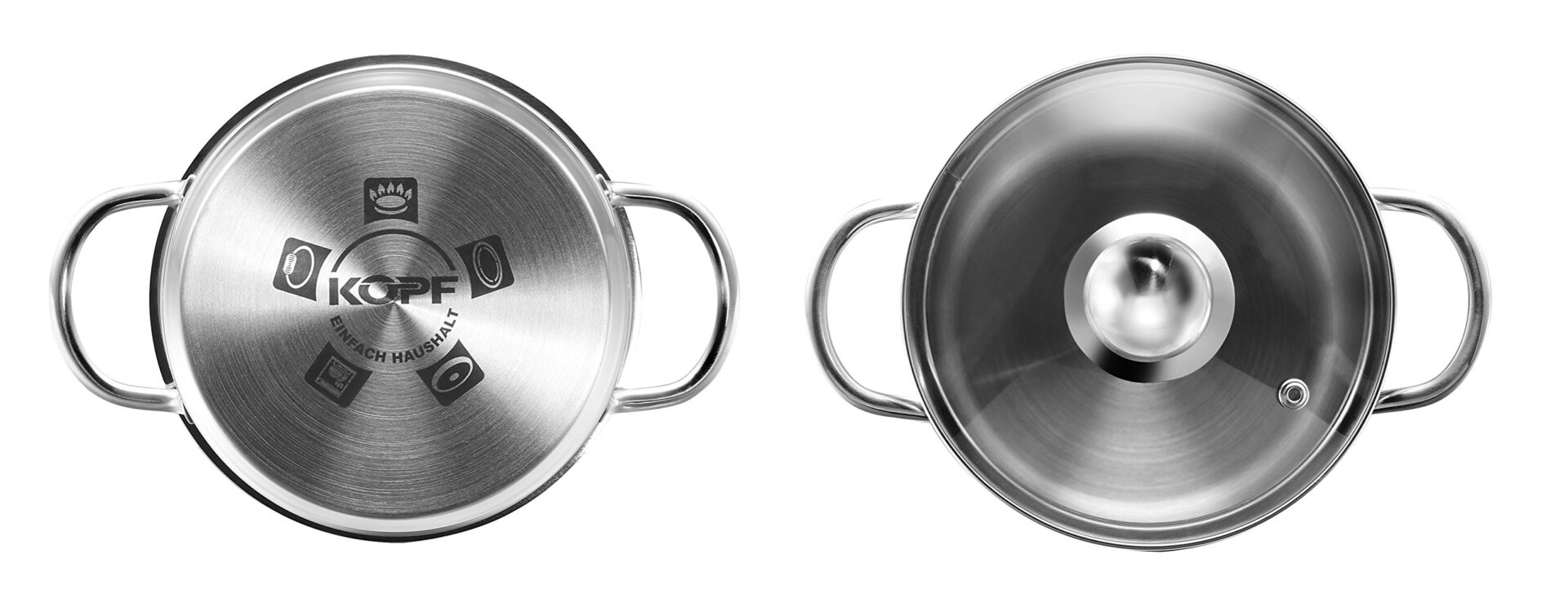 Kopf Mini zestaw garnków Parvus (stal nierdzewna, 2-częściowy, 14 + 14 cm, w zestawie szklana pokrywka, indukcja)