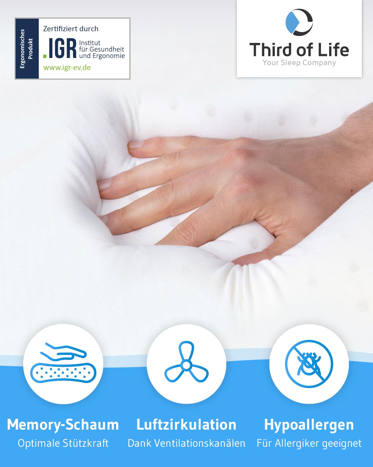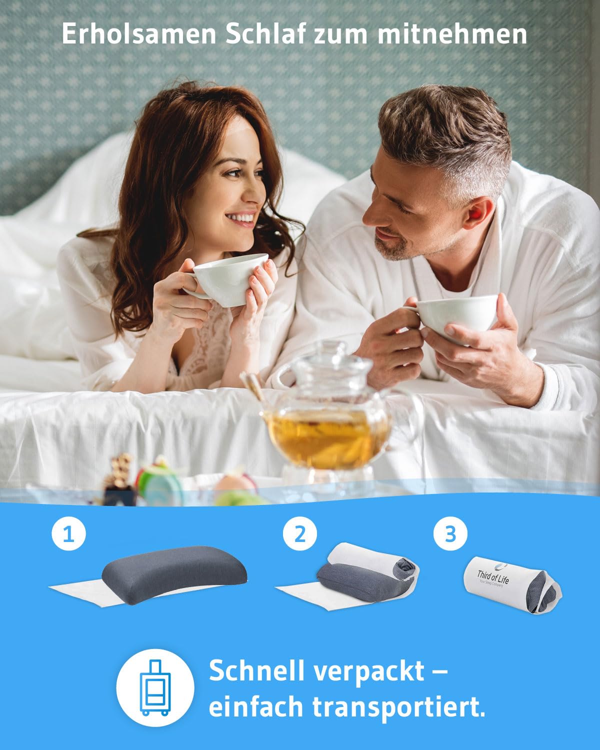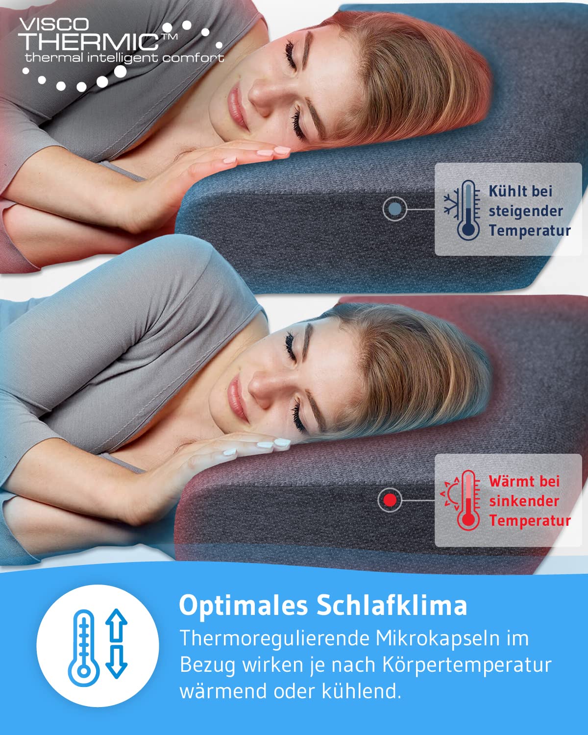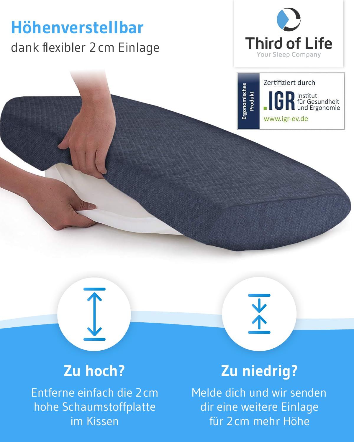 Poduszka pod głowę Luna Quickdry | regulowana wysokość pianka memory i poduszka podpierająca kark z poszewką klimatyczną | ortopedyczna poduszka dla osób śpiących na boku z szybkoschnącą poszewką | ergonomiczna poduszka pod kark