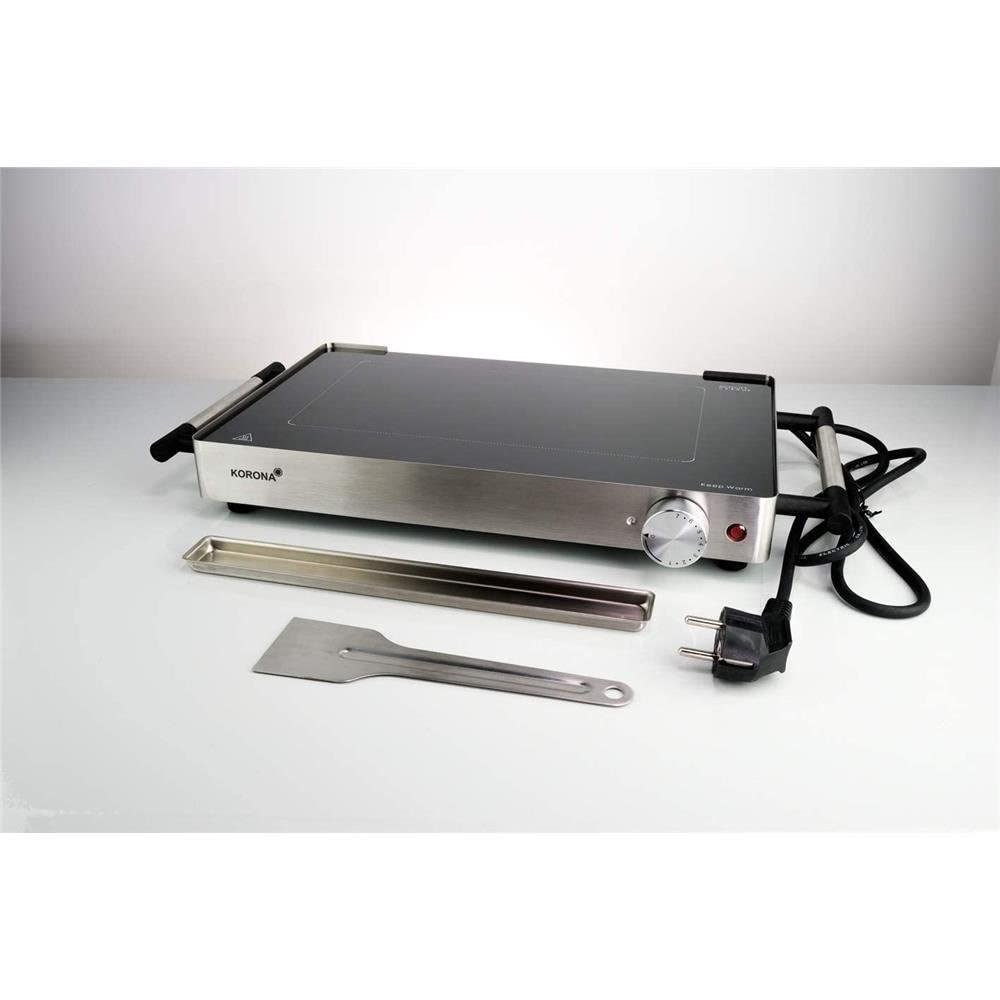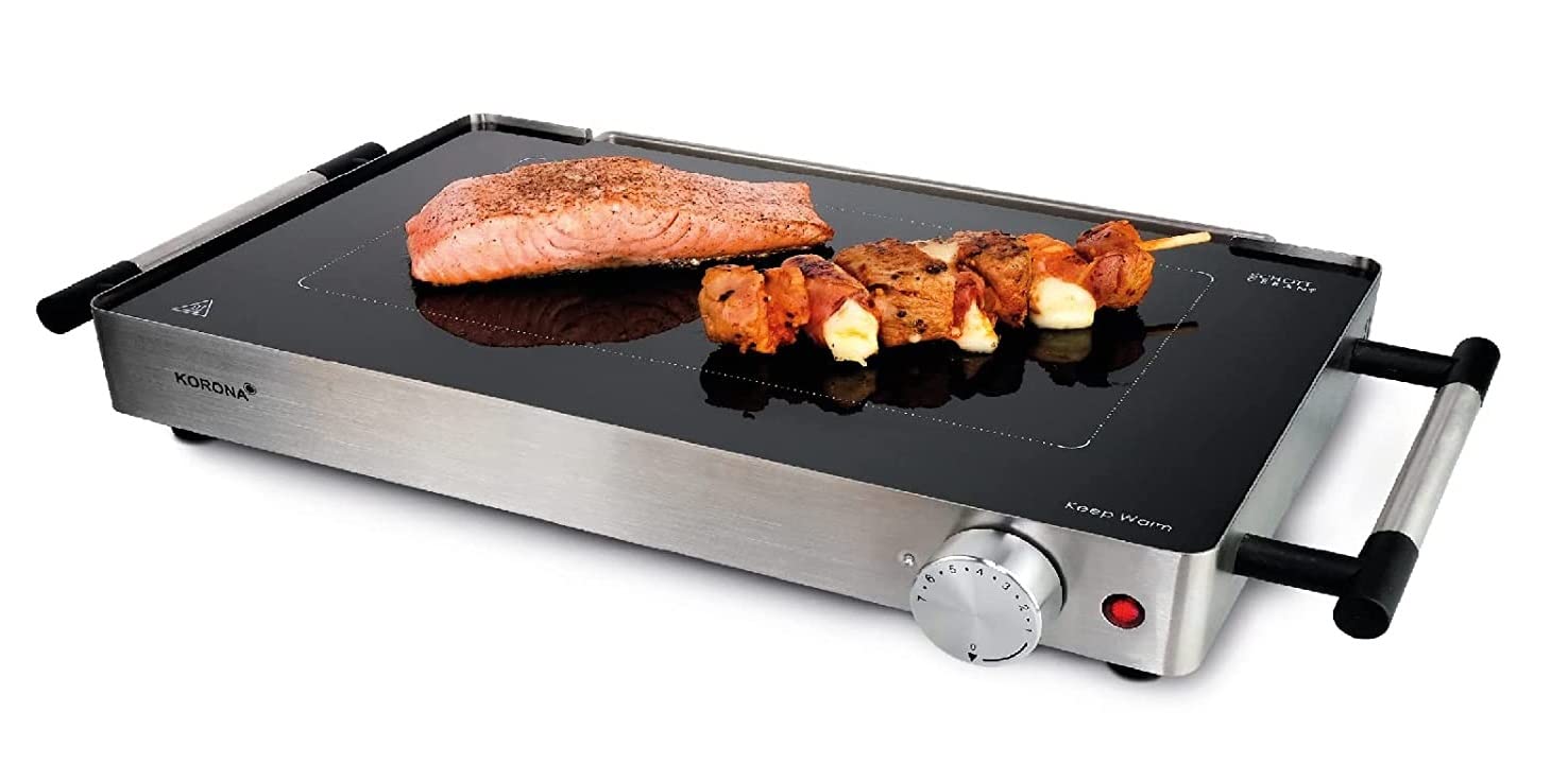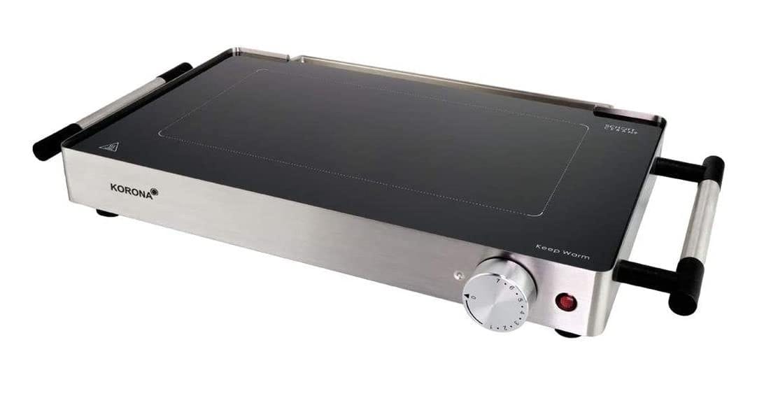 Korona 46100 to również grill 2 w 1, który może być używany jako płyta grzejna do podgrzewania potraw. W najniższym ustawieniu temperatury można utrzymywać ciepło potraw lub talerzy.
