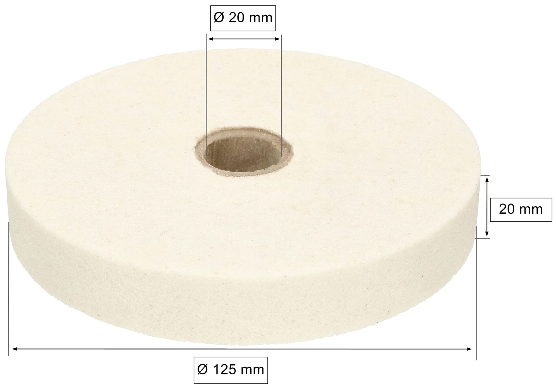 • Dane techniczne – tarcza szlifierska Średnica: 125 mm, średnica otworu montażowego: 20 mm, grubość: 20 mm, kolor: biały, waga: 474 g