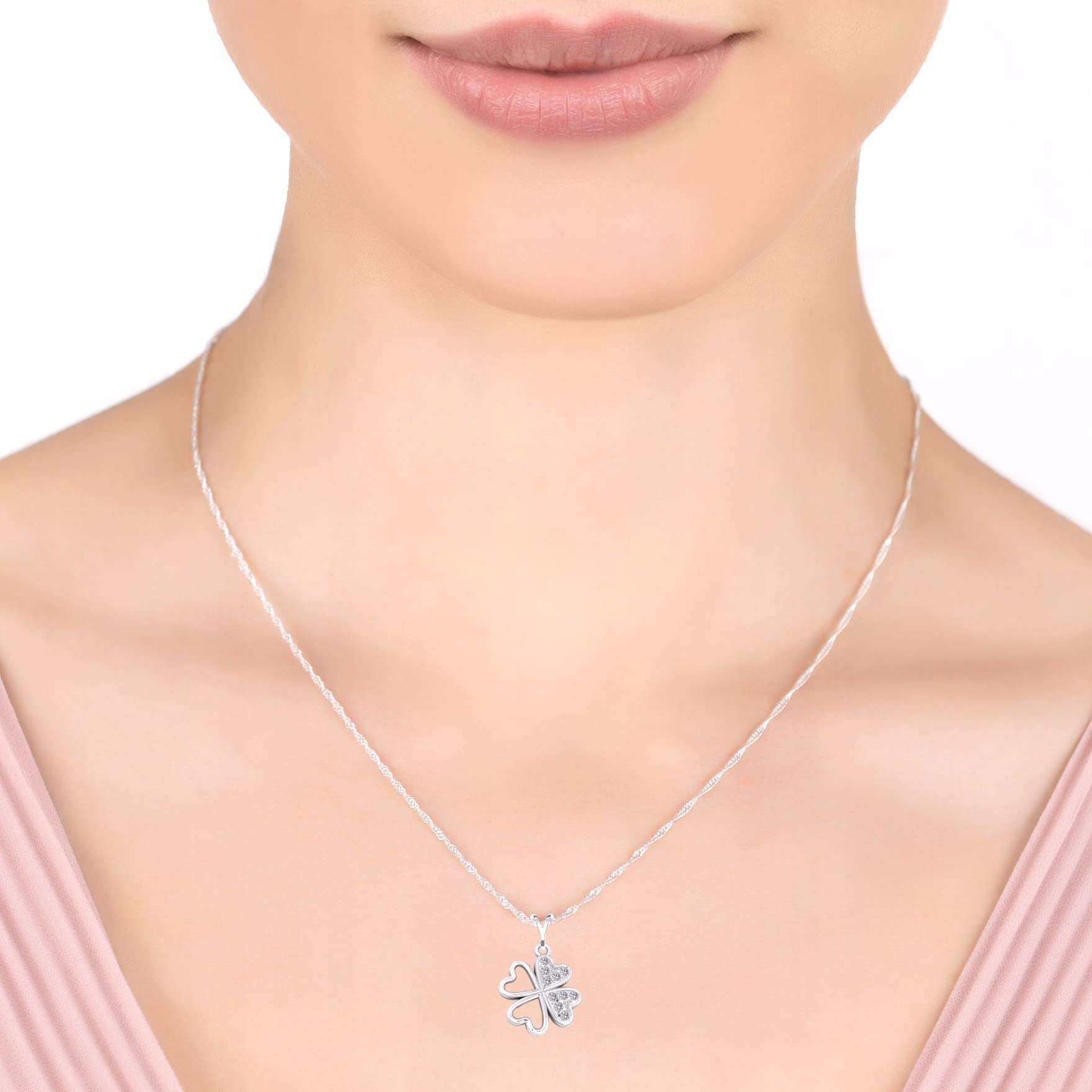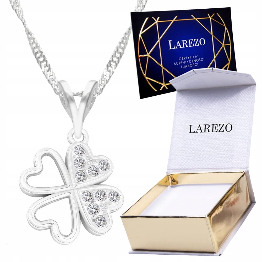 Naszyjnik damski LAREZO ze srebra próby 925, łańcuszek z zawieszką w kształcie koniczyny, talizman, z cyrkoniami, elegancki prezent