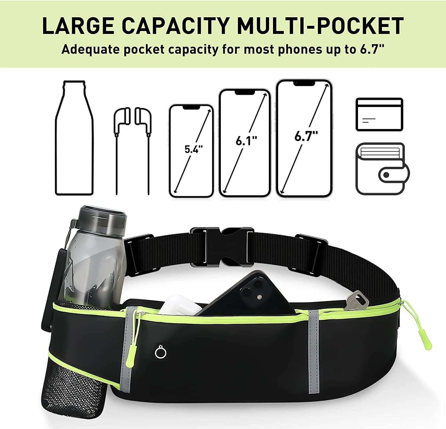 • Uchwyt na butelkę stabilny i bezpieczeństwo: pasek na butelkę jest stabilny, może trzymać butelkę stabilnie i przeciw upadkowi, a odblaskowe paski sprawiają, że jest widoczny i zapewniają bezpieczeństwo podczas biegania lub biegania w nocy.