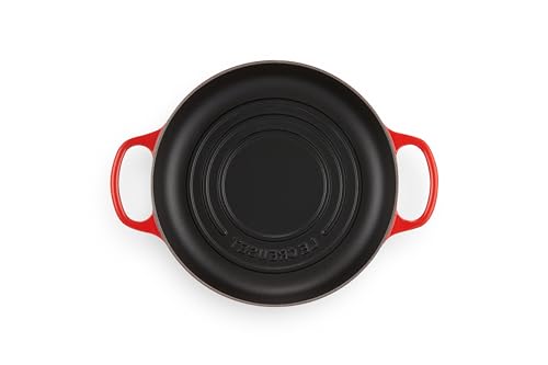 ✅ Nisko profilowa podstawa: Nisko profilowa podstawa oznaczona trzema pierścieniami, charakterystycznymi dla Le Creuset, daje złotą, chrupiącą skórkę