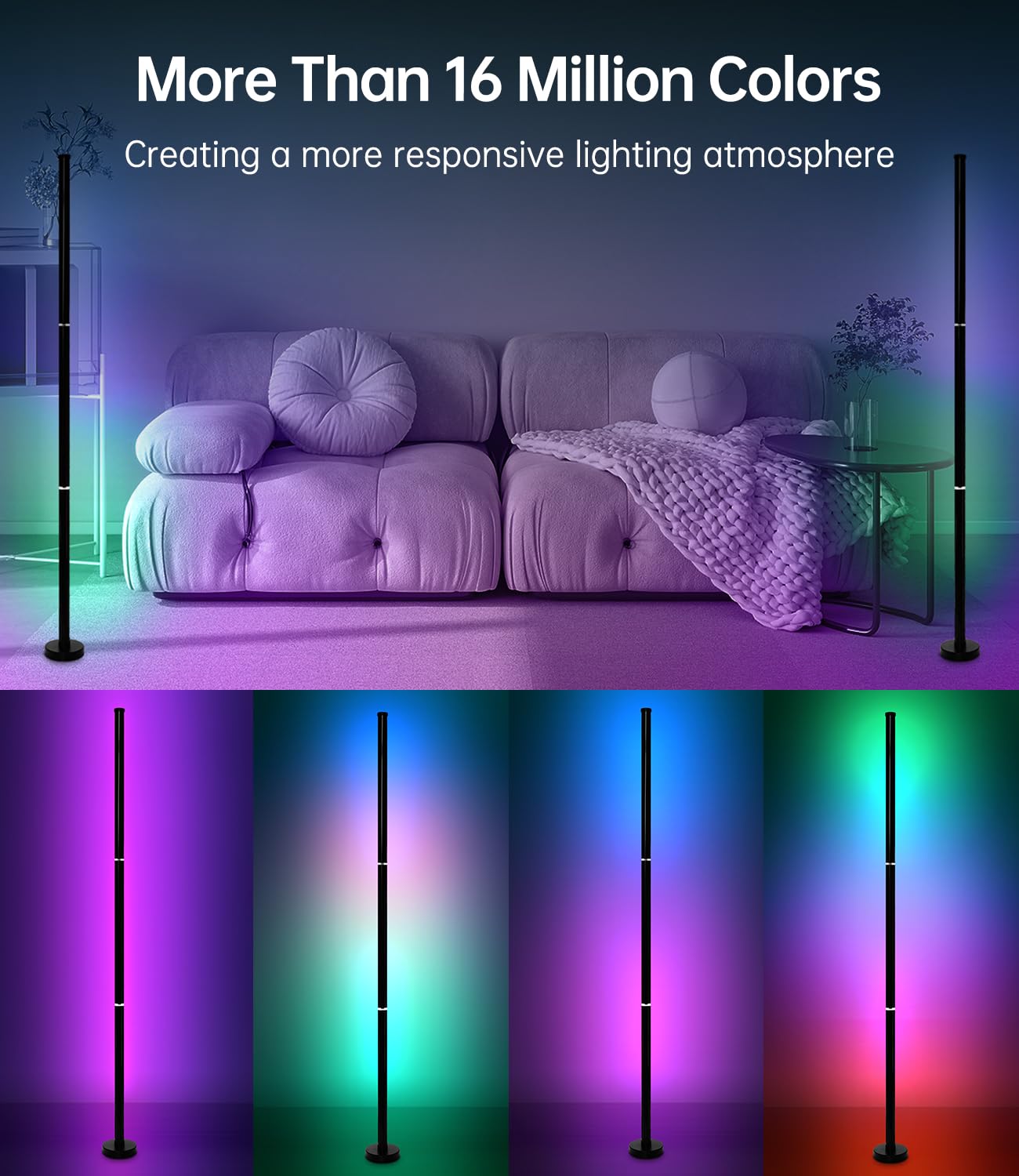 Kolejną interesującą funkcją lampy podłogowej RGB jest jej unikalna możliwość synchronizacji z muzyką. Dzięki wbudowanemu czujnikowi muzycznemu lampa podłogowa pulsuje światłem w rytmie dźwięków, co czyni ją idealnym rozwiązaniem na rodzinne imprezy czy romantyczne kolacje. Wyobraź sobie, jak efektownie będzie wyglądać wystrój Twojego salonu, gdy światła będą harmonizować z Twoimi ulubionymi melodiami!