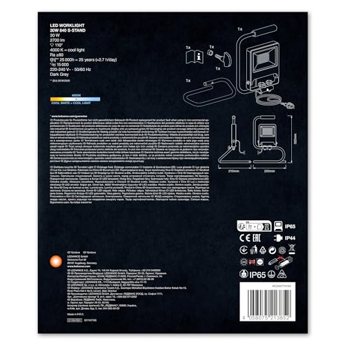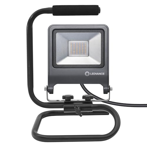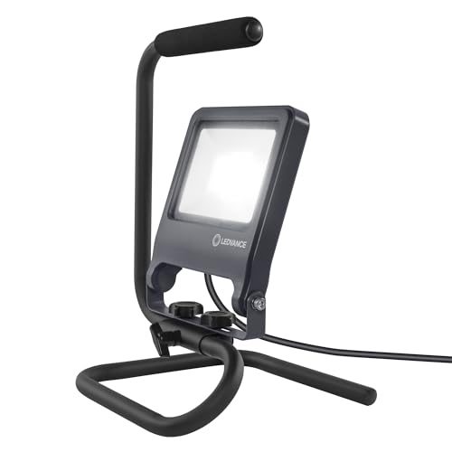 Marke: Ledvance Farbe: Dunkelgrau Eigenschaften: Projecteur de chantier à tête pivotante Produkteigenschaften: Arbeitleuchte mit schwenkbarem Leuchtenkopf Schutzart, Leuchtenkopf und -gehäuse: IP65, Schutzart, Stecker: IP44 Schnellverschluß zur Verstellung des Leuchtenkopfwinkels 2 m Kabel mit Stecker vom Typ E/F Paketmaße: 76x284x1450 Einzelheiten: Tragbares LED-Arbeitslicht mit S-Stand. Produkteigenschaften: Sehr helle und funktionelle LED-Außenleuchten. Schutzart: IP65. Gehäuse aus Aluminiumdruckguss.…