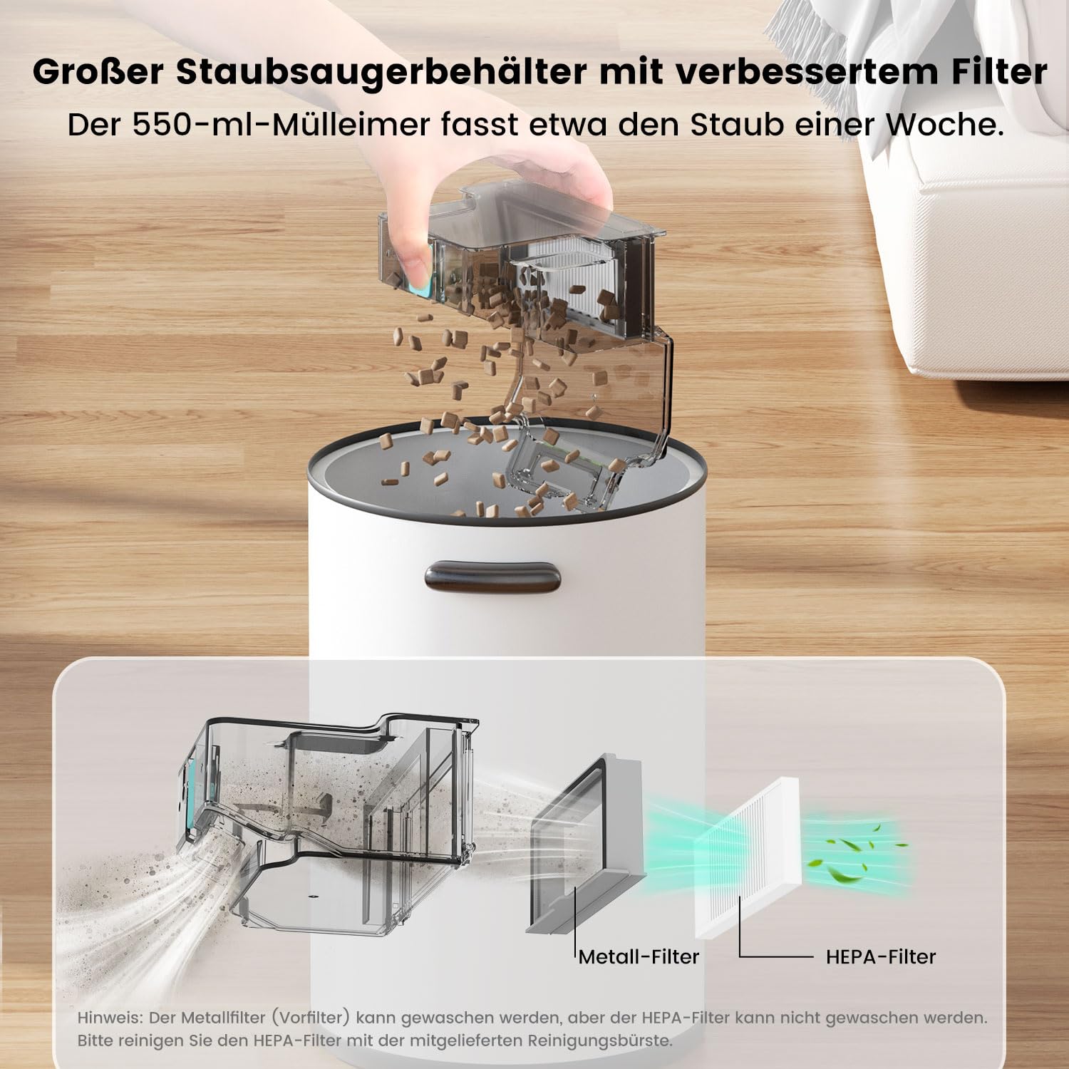 Lefant Robot Odkurzający M310 to innowacyjne urządzenie, które wyróżnia się precyzyjną nawigacją na odległość oraz imponującą siłą ssącą 4500Pa. Dzięki temu odkurzacz skutecznie usuwa kurz, sierść zwierząt i inne zanieczyszczenia z dywanów i twardych podłóg. Wyposażony w filtr HEPA, zapewnia czyste powietrze i eliminuje alergeny.