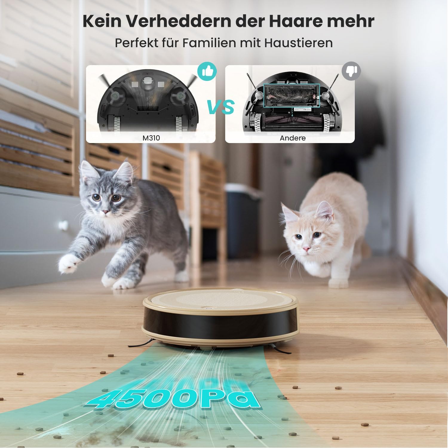 Robot odkurzający Lefant M310 4500Pa WiFi/App HEPA do sierści zwierząt – Szampański Szary