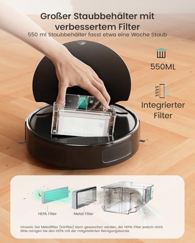 LEFANT Robot odkurzający M310 to innowacyjne urządzenie, które zapewnia doskonałą wydajność sprzątania dzięki swojej mocy ssącej wynoszącej aż 4500Pa. Dzięki precyzyjnej nawigacji, robot jest w stanie poruszać się po pomieszczeniu z dużą dokładnością, osiągając nawet trudno dostępne miejsca.