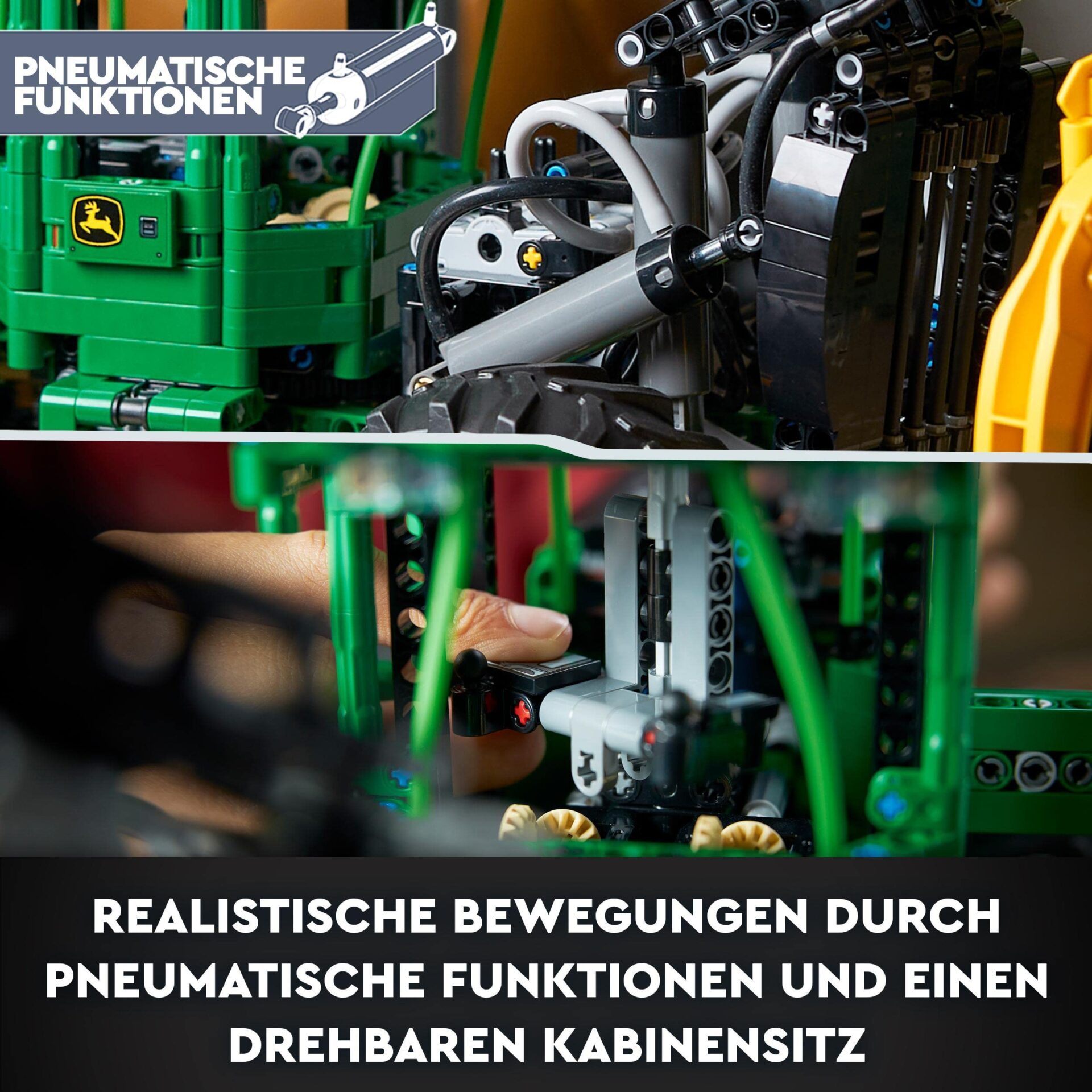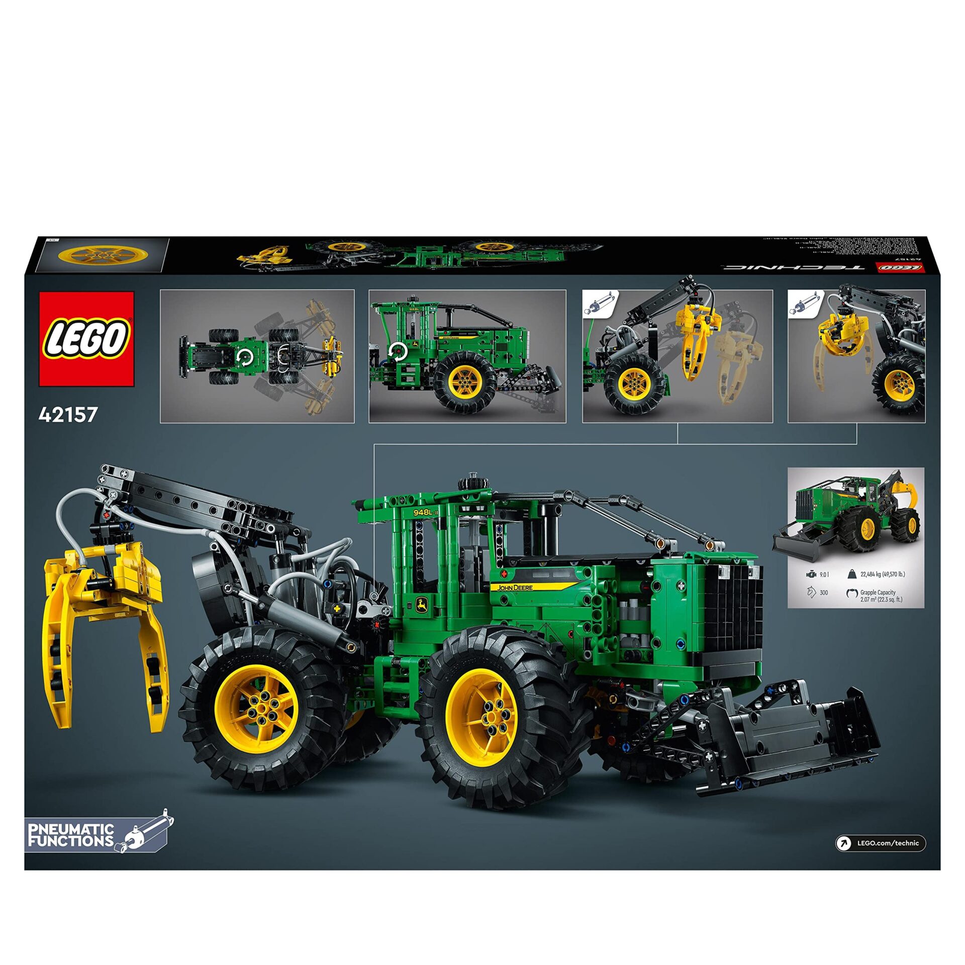 LEGO 42157 Technic Ciągnik zrywkowy John Deere 948L-II to imponujący zestaw konstrukcyjny, który umożliwia dzieciom wcielenie się w rolę operatora potężnej maszyny. Zestaw ten pozwala na eksplorację pneumatycznych funkcji, które kontrolują chwytak z trzema różnymi ruchami, a także na korzystanie z napędu na cztery koła i realistycznego układu kierowniczego. Duży model ma ponad 21 cm wysokości, 53 cm długości i 19 cm szerokości, co czyni go imponującym dodatkiem do każdego pokoju dziecięcego. Dzieci mogą również wykorzystać swoje umiejętności techniczne, poznając więcej na temat mechaniki tego zestawu konstrukcyjnego w trójwymiarze. Dzięki intuicyjnym instrukcjom dostępnym za pośrednictwem aplikacji LEGO Builder, mogą dowiedzieć się, jak wszystko działa, jednocześnie bawiąc się i tworząc własne kreatywne konstrukcje. Ten zaawansowany zestaw konstrukcyjny jest idealny dla dzieci w wieku od 11 lat i stanowi świetny pomysł na prezent dla fanów LEGO Technic, którzy są gotowi na unikalne wyzwanie konstrukcyjne! Z detalami takimi jak obracane siedzenie w kabinie, działające reflektory i wymienne opony, twoje małe dziecko inżynier wkrótce stanie się ekspertem od John Deere 948L-II Skidder. Maszyna ma 21 cm wysokości, 53 cm długości i 19 cm szerokości. Zawiera 1492 elementy.