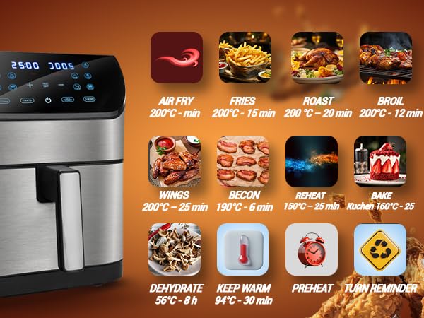Frytkownica na gorące powietrze Lehmann Procado oferuje aż 12 różnych programów gotowania, co sprawia, że jest niezwykle wszechstronna. Możemy w niej nie tylko przygotować chrupiące frytki, ale również piec, grillować czy podgrzewać potrawy. Dzięki różnorodności funkcji, każdy domownik znajdzie coś dla siebie, a posiłki będą zawsze perfekcyjne w smaku.