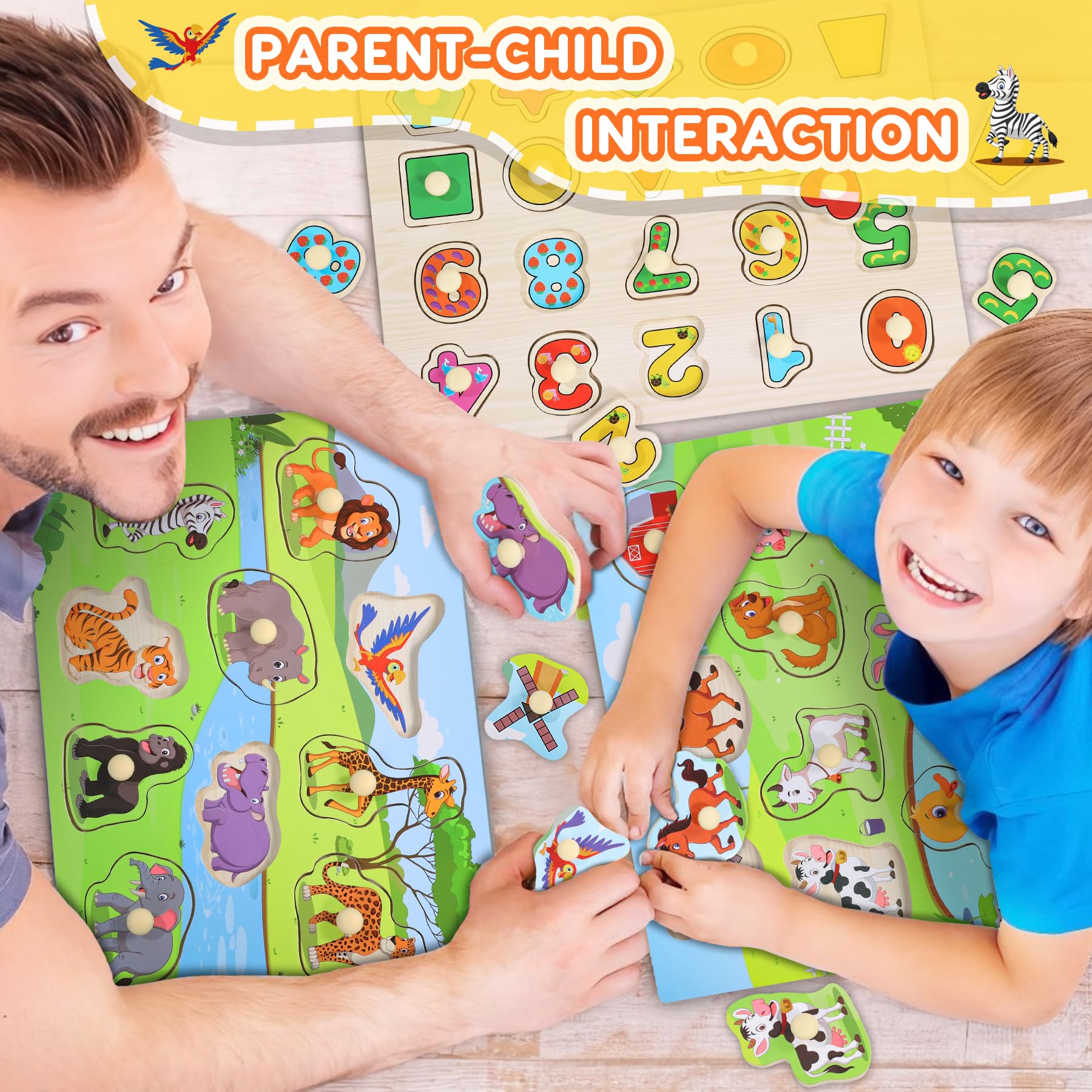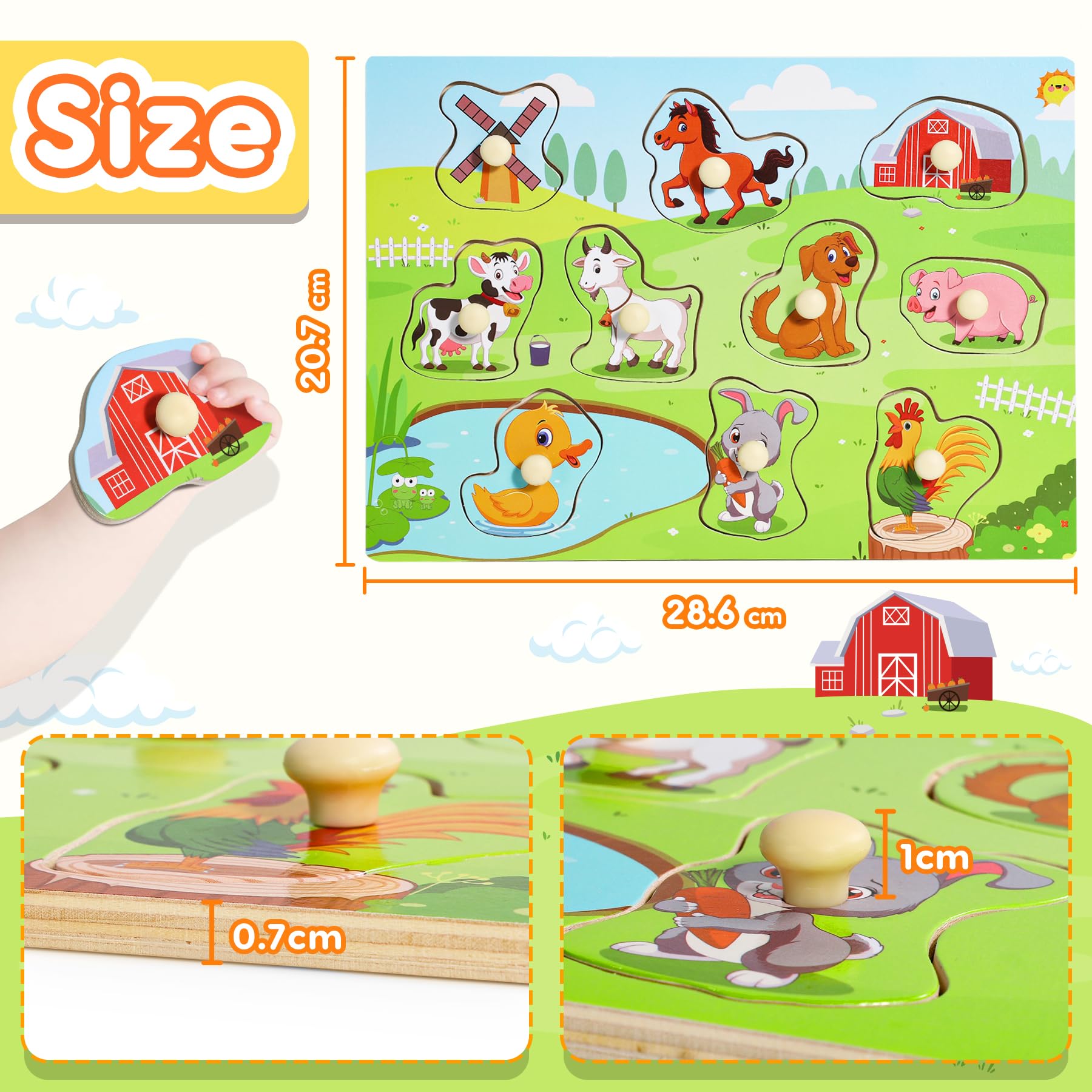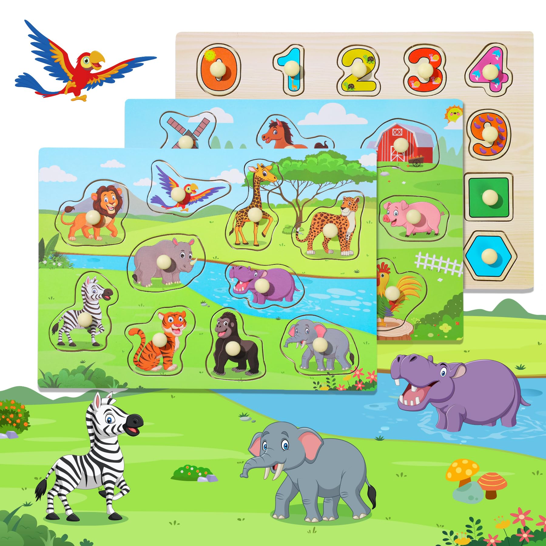 Lenbest 3-częściowe drewniane puzzle Montessori dla dzieci 1-3 lata – edukacyjne zabawki