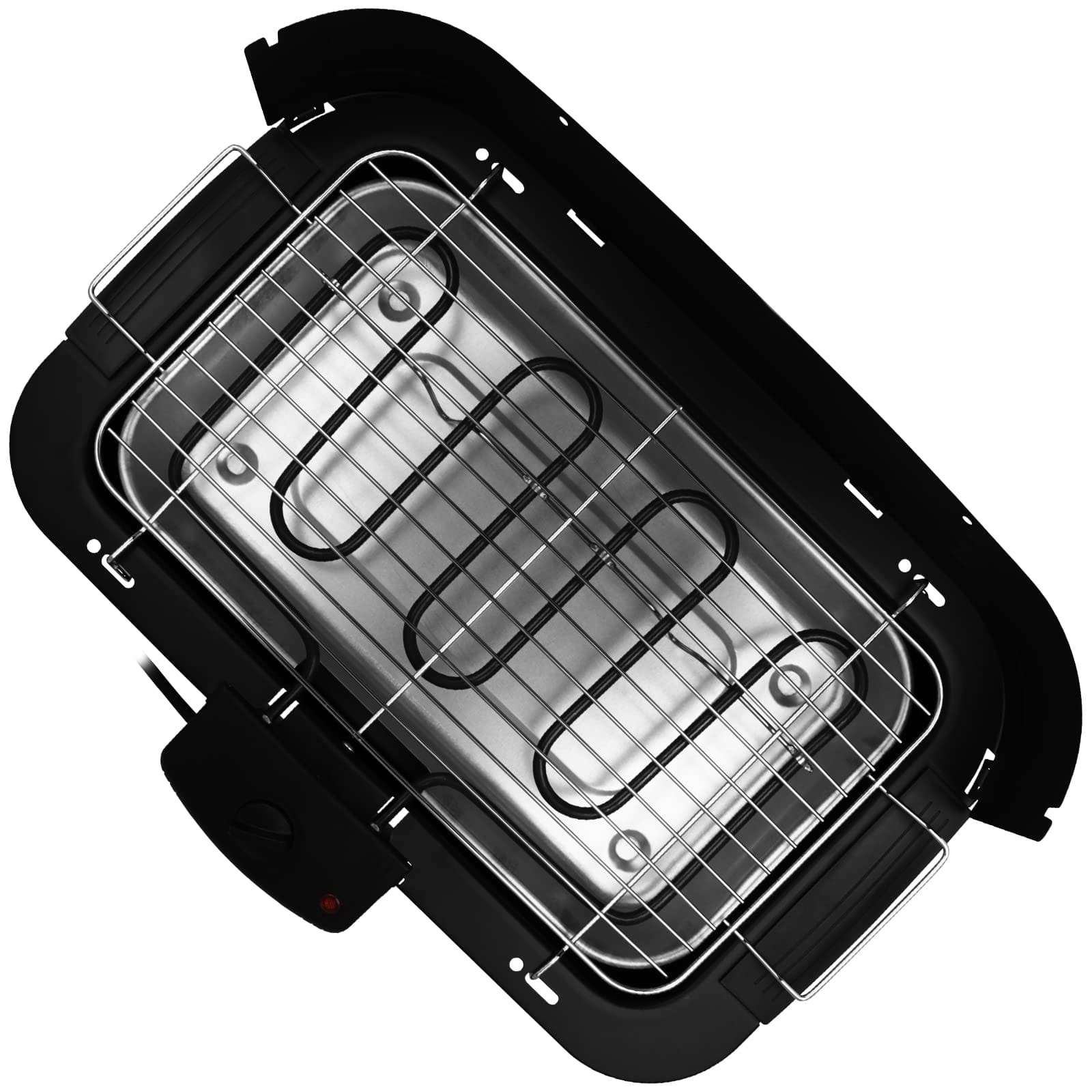 Grill posiada również wyjmowaną tackę na olej, element grzewczy oraz ruszt, co ułatwia czyszczenie po grillowaniu. Przed pierwszym użyciem, należy napełnić podstawę aluminiowego reflektora wodą.