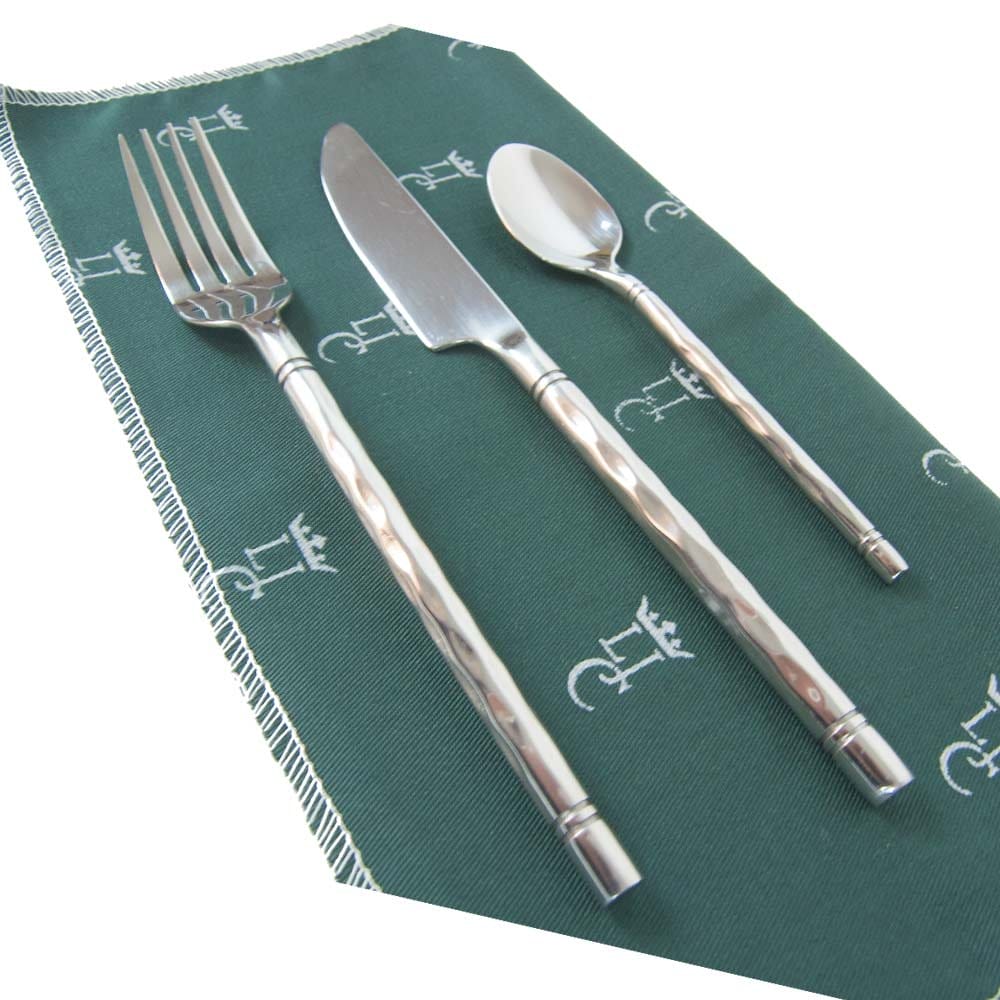 – 4 serwetki (30 x 30 cm) z ciemnozielonej bawełny z monogramem.