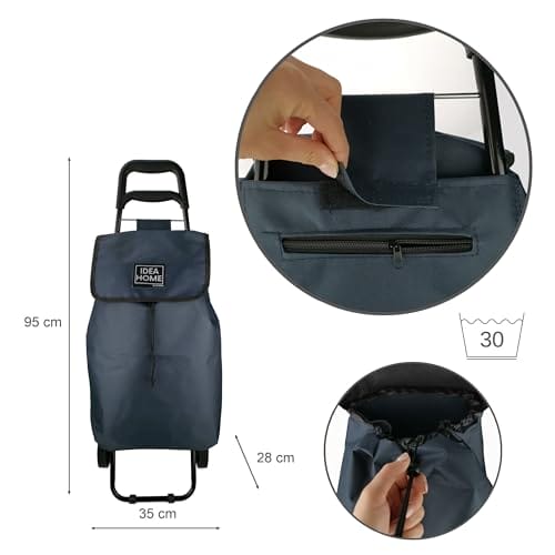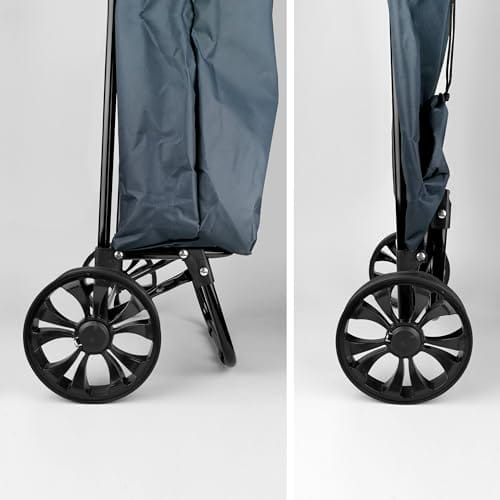 • Wózek na zakupy z wodoodpornego materiału poliestrowego jest wyjątkowo przydatny podczas zakupów, szczególnie w przypadku nieprzewidzianych warunków pogodowych. Chroni zakupy przed wilgocią i umożliwia bezpieczny transport.
