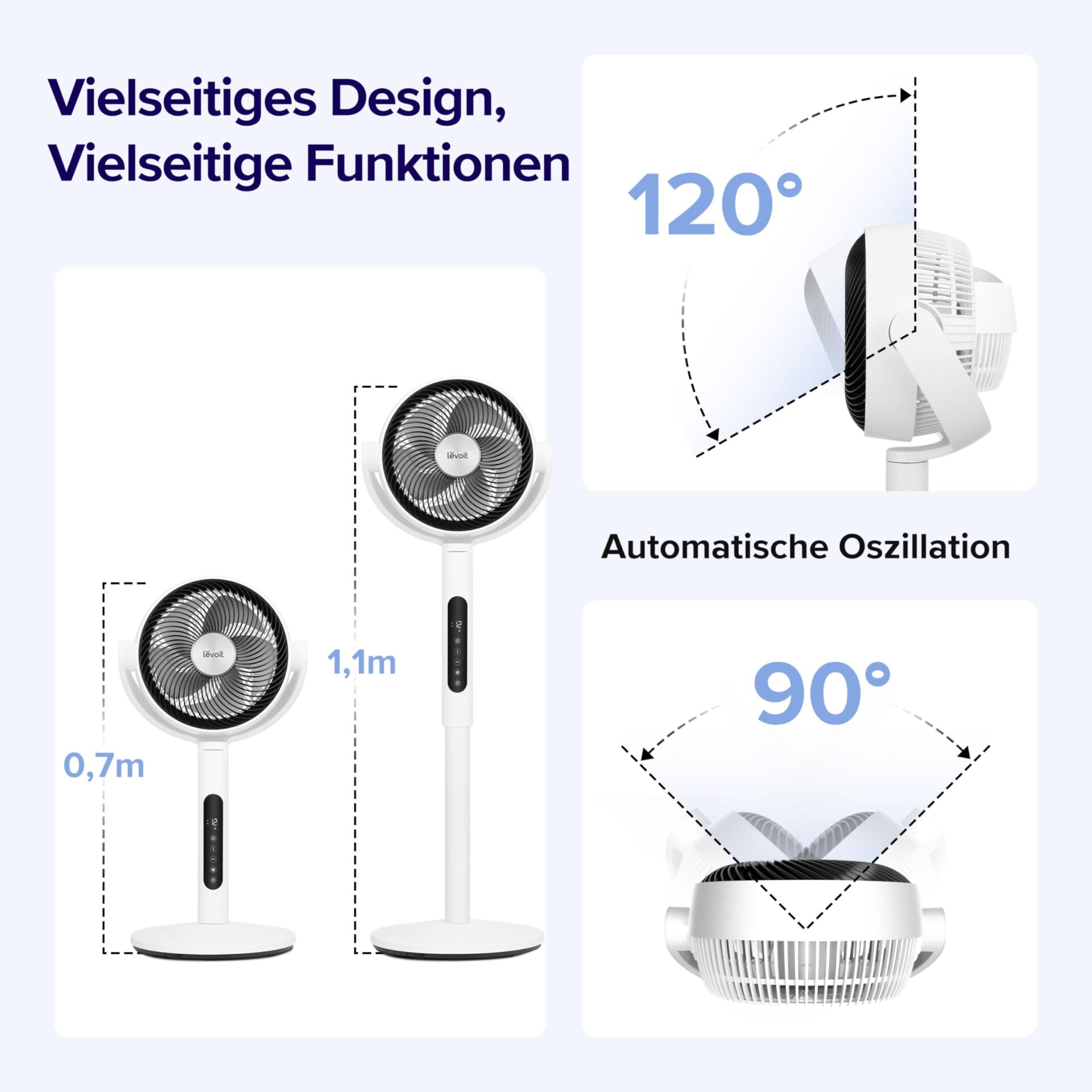 LEVOIT Cichy Wentylator Podłogowy 20 dB z Pilotem, 12 Prędkości, Oscylacja 90°/120°