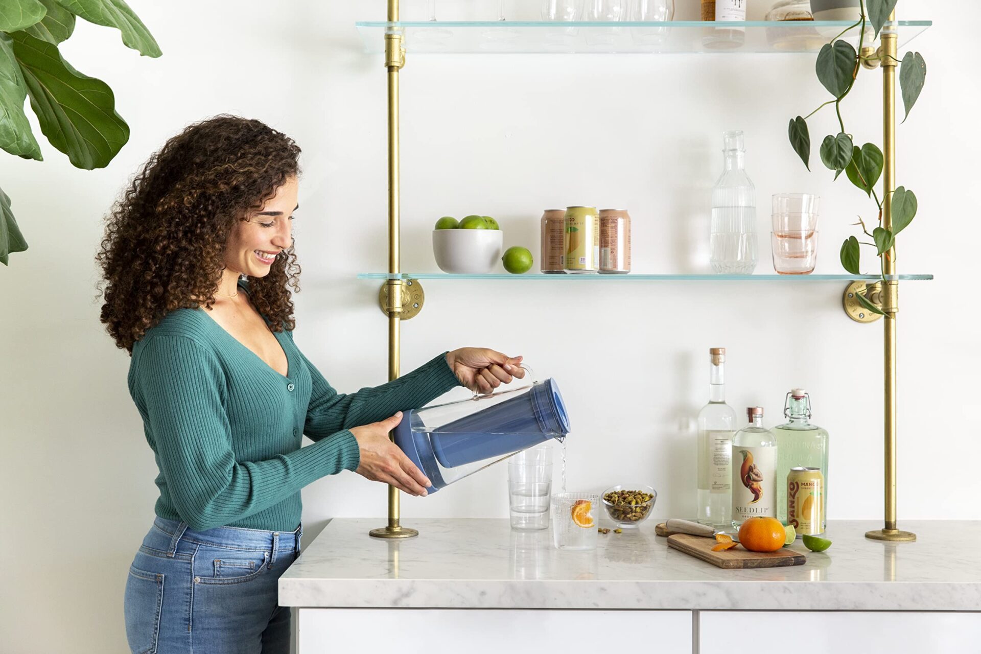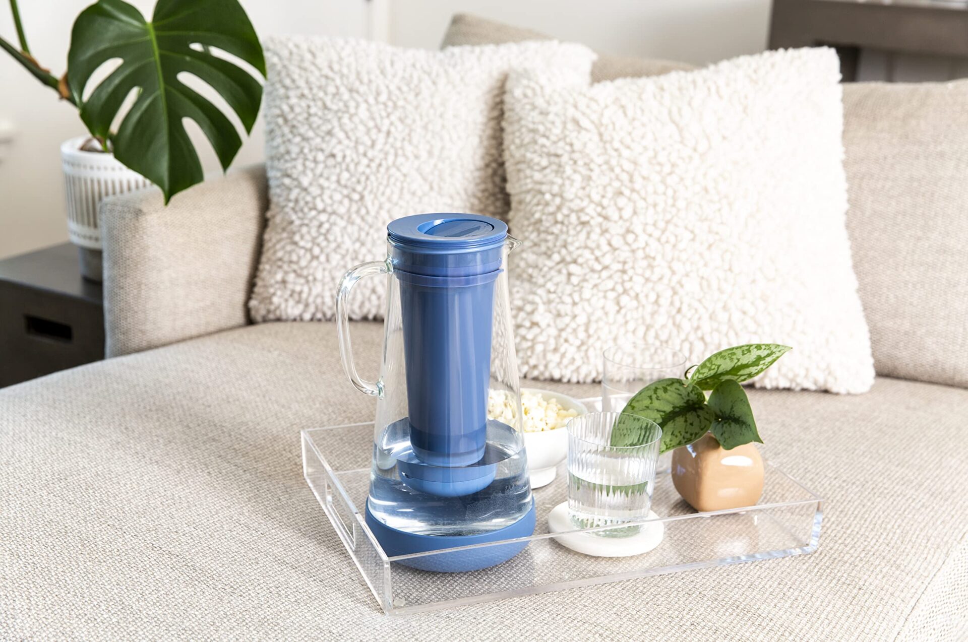 LifeStraw – dzbanek z filtrem do wody, 7 filiżanek, szkło z silikonową podstawą, burzliwy niebieski, ochrona przed bakteriami, pasożytami, mikroplastikami, ołowiem, rtęcią