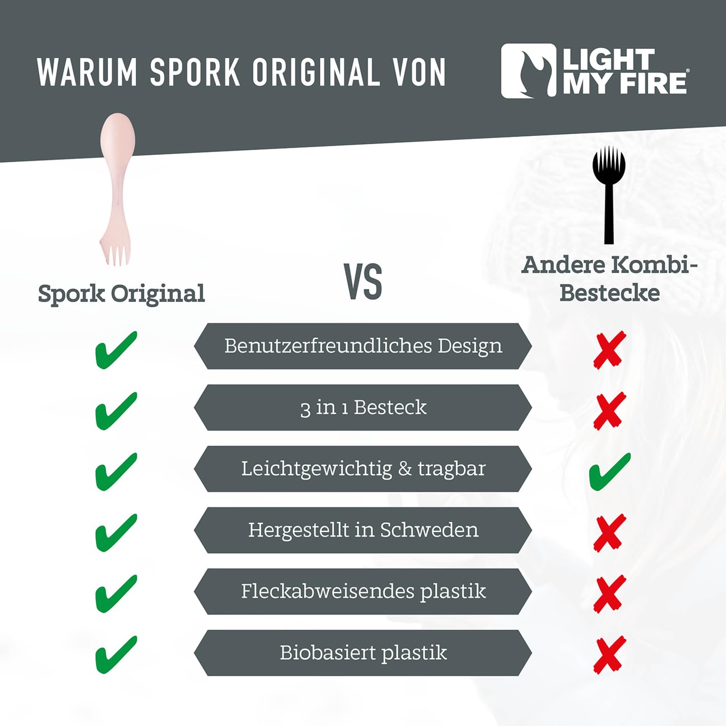 Wybierając Light My Fire Spork Original 2-pak, inwestujesz w produkt, który łączy w sobie funkcjonalność, wygodę i dbałość o środowisko. To must-have dla każdego miłośnika przygód na świeżym powietrzu, który ceni sobie jakość i praktyczność.