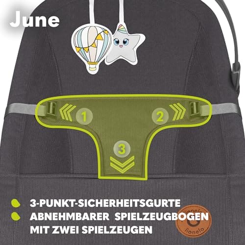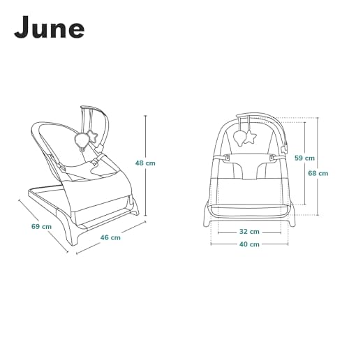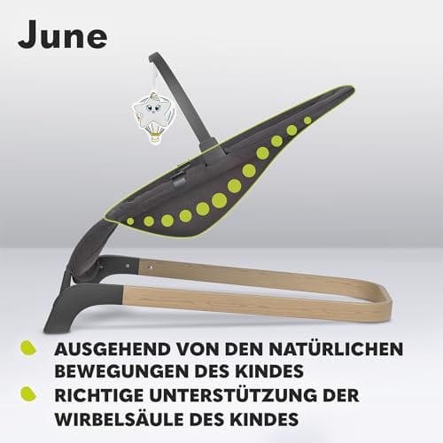 • BEZPIECZECZNY: June został wyprofilowany tak, by pomóc dziecku zachowywać prawidłową pozycję. Poszycie produktu zostało skrojone tak, by dopasować się do naturalnych krzywizn ciała równomiernie rozkładając ciężar