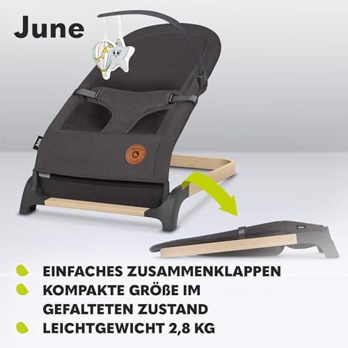 LIONELO June bujaczek dziecięcy od pierwszych dni życia do 9kg naturalny ruch bujania lekki stabilny antypoślizgowy pasy bezpieczeństwa składany bujak dla dziecka