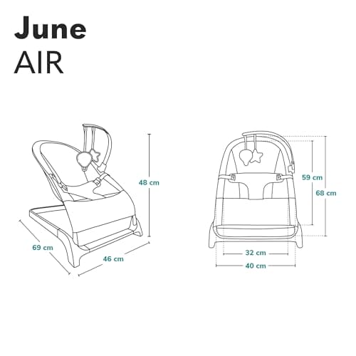 • BEZPIECZECZNY: June Air został wyprofilowany tak, by pomóc dziecku zachowywać prawidłową pozycję. Poszycie produktu zostało skrojone tak, by dopasować się do naturalnych krzywizn ciała równomiernie rozkładając ciężar
