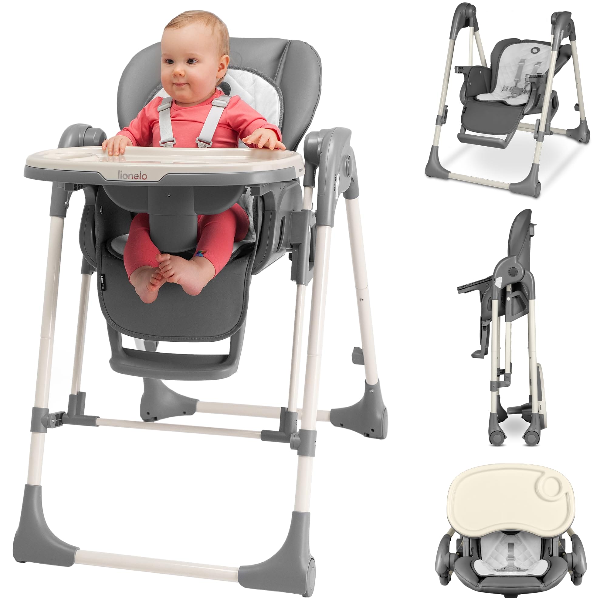 • PRAKTYCZNE ROZWIĄZANIA: krzesełko dziecięce wyposażone jest w podwójną, regulowaną na 2 poziomach tacę, którą można myć w zmywarce. W razie potrzeby tackę można zdemontować i zawiesić na wieszaku w tylnej części krzesełka. W przypadku zabrudzenia, tapicerkę można wyczyścić ścierką, a wkładkę wyprać ręcznie w 30 C. Krzesełko składa się do kompaktowych rozmiarów 61 x 26 x 91-115 cm