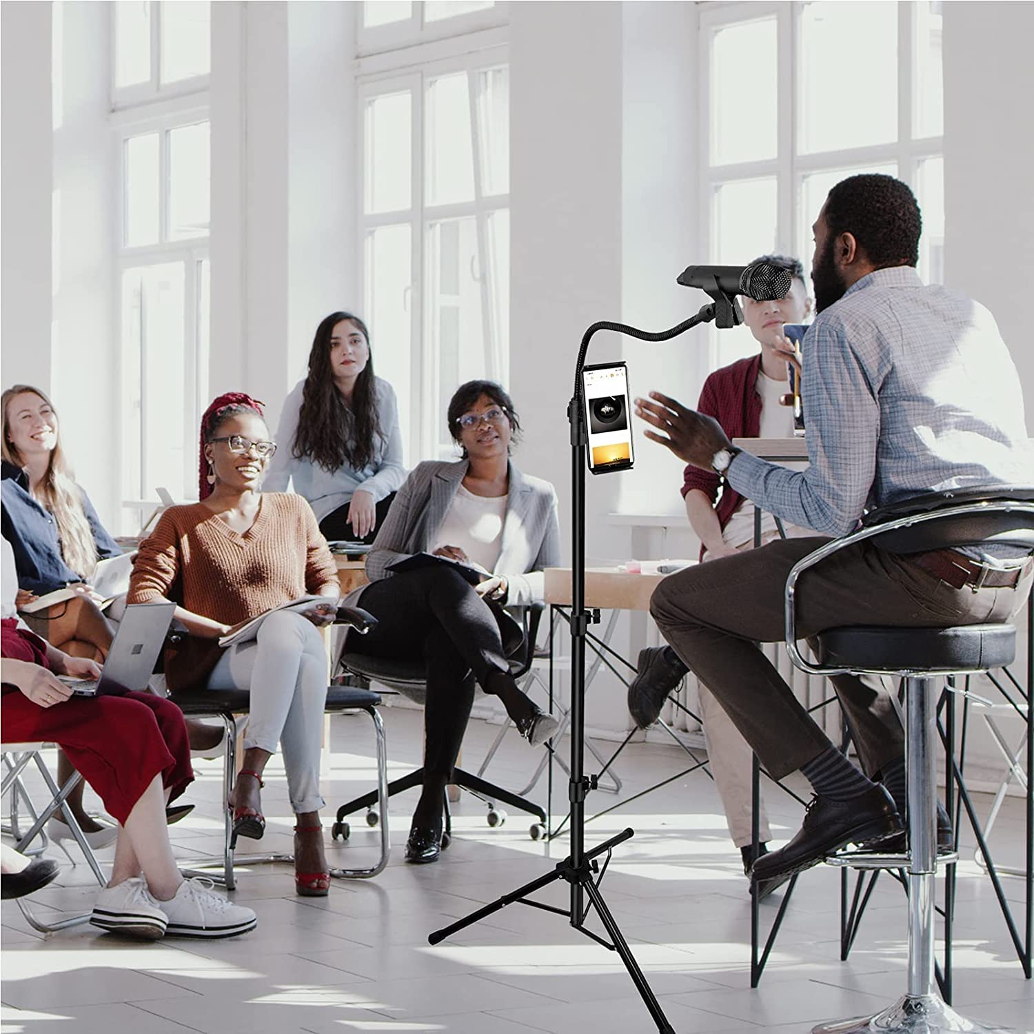 LIUGAST Portable Microphone Stand is a versatile and convenient tool for any musician, podcaster, or content creator. With its adjustable goose neck design, this microphone stand can extend from 8 to 16 feet, allowing for optimal positioning and flexibility during performances or recordings.