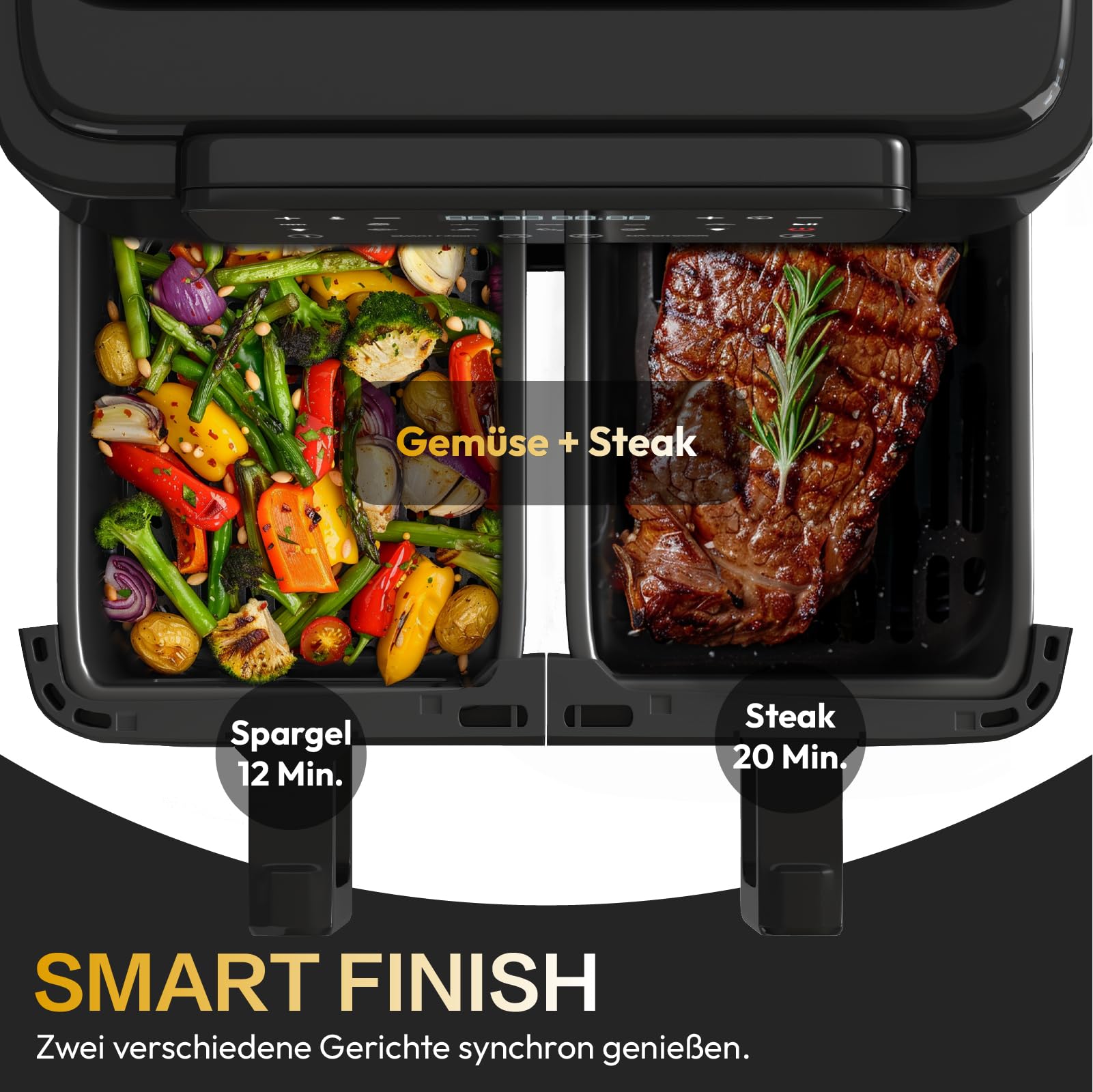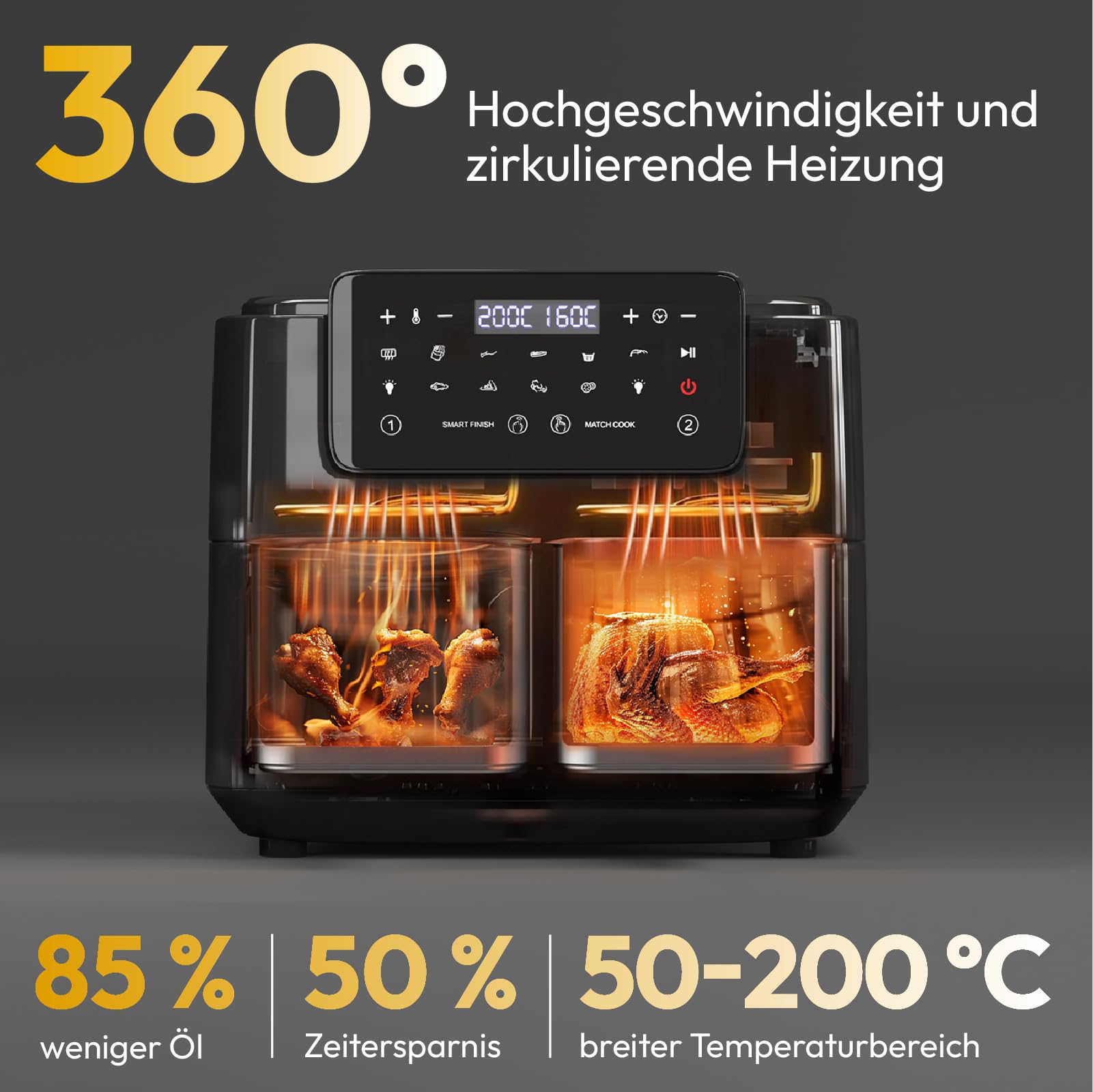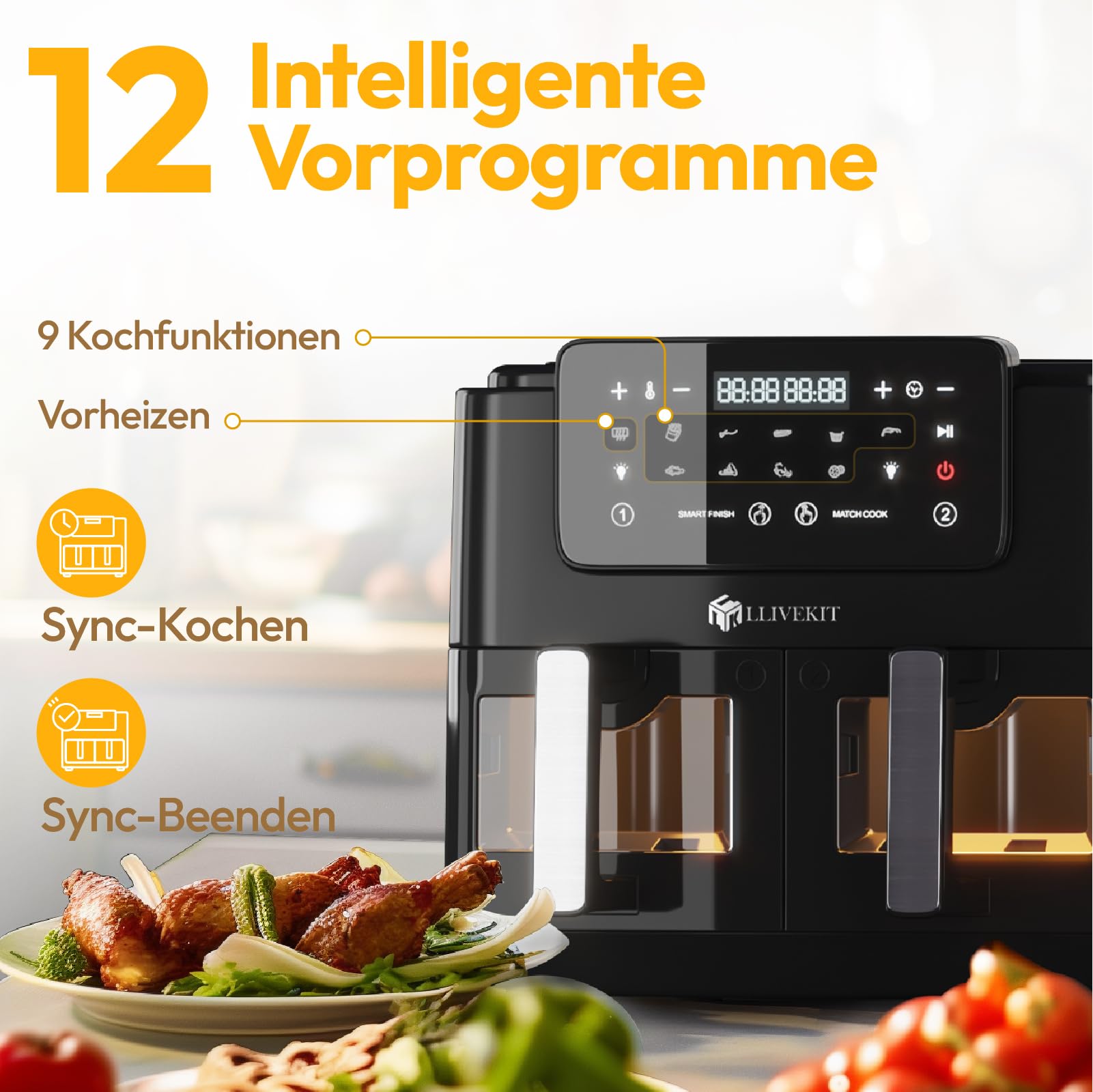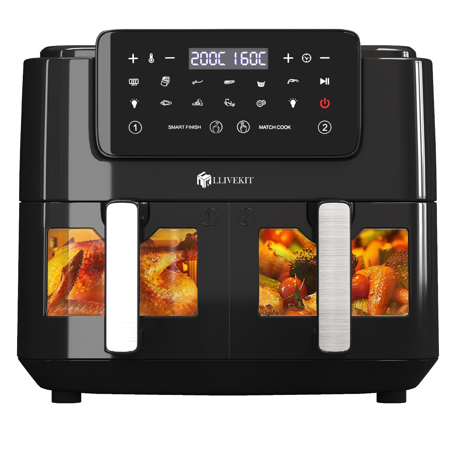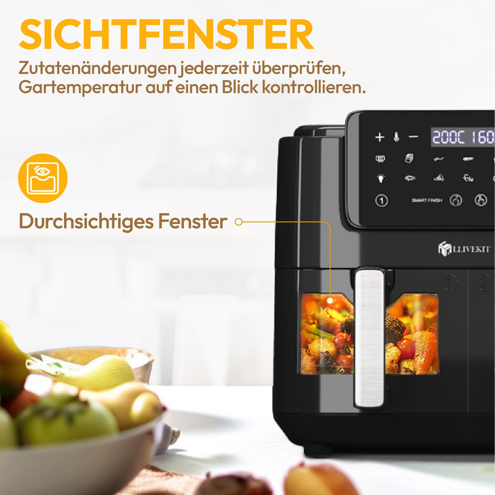 LLIVEKIT Frytkownica na gorące powietrze Dual Zone z okienkiem 9 l XXL bez tłuszczu: Zdrowe gotowanie w zasięgu ręki