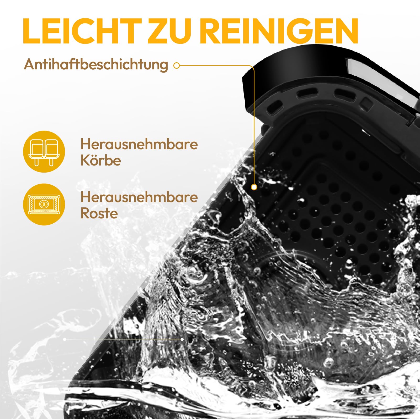 LLIVEKIT Frytkownica na gorące powietrze Dual Zone o pojemności 9 l to doskonałe rozwiązanie dla tych, którzy pragną zdrowo jeść, oszczędzać czas i energię. Dzięki zaawansowanym funkcjom gotowania 9 w 1, możesz z łatwością przygotowywać różnorodne potrawy, ciesząc się ich smakiem bez zbędnego tłuszczu. Zainwestuj w zdrowy styl życia z LLIVEKIT i odkryj, jak proste może być zdrowe gotowanie.