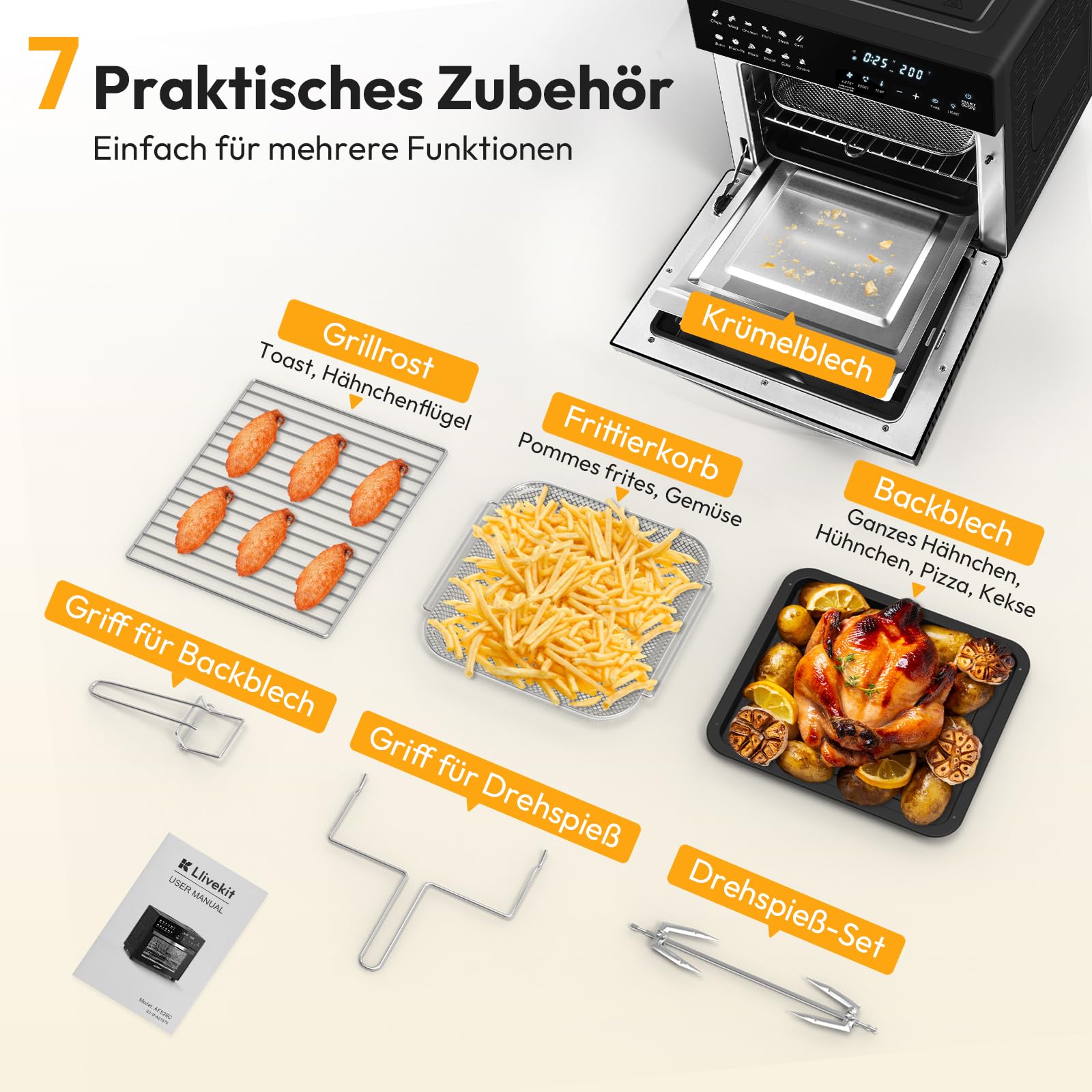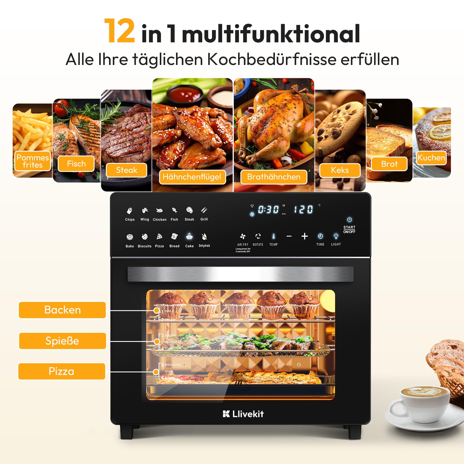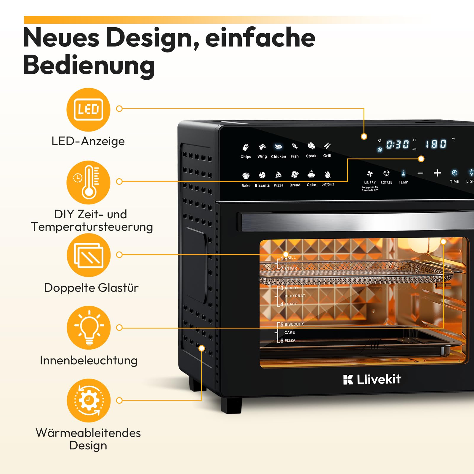 LLIVEKIT Mini frytkownica na gorące powietrze 26 l 1700 W