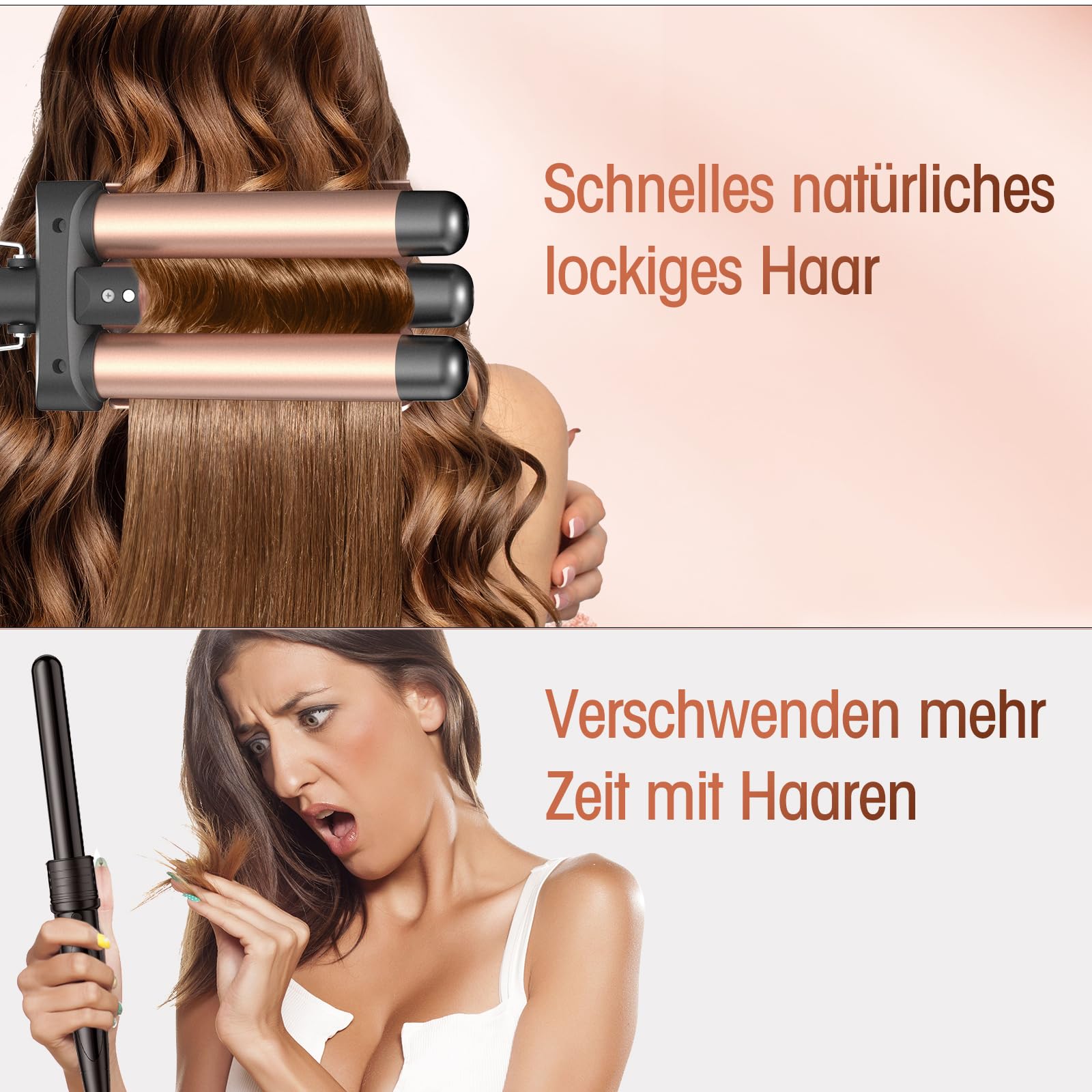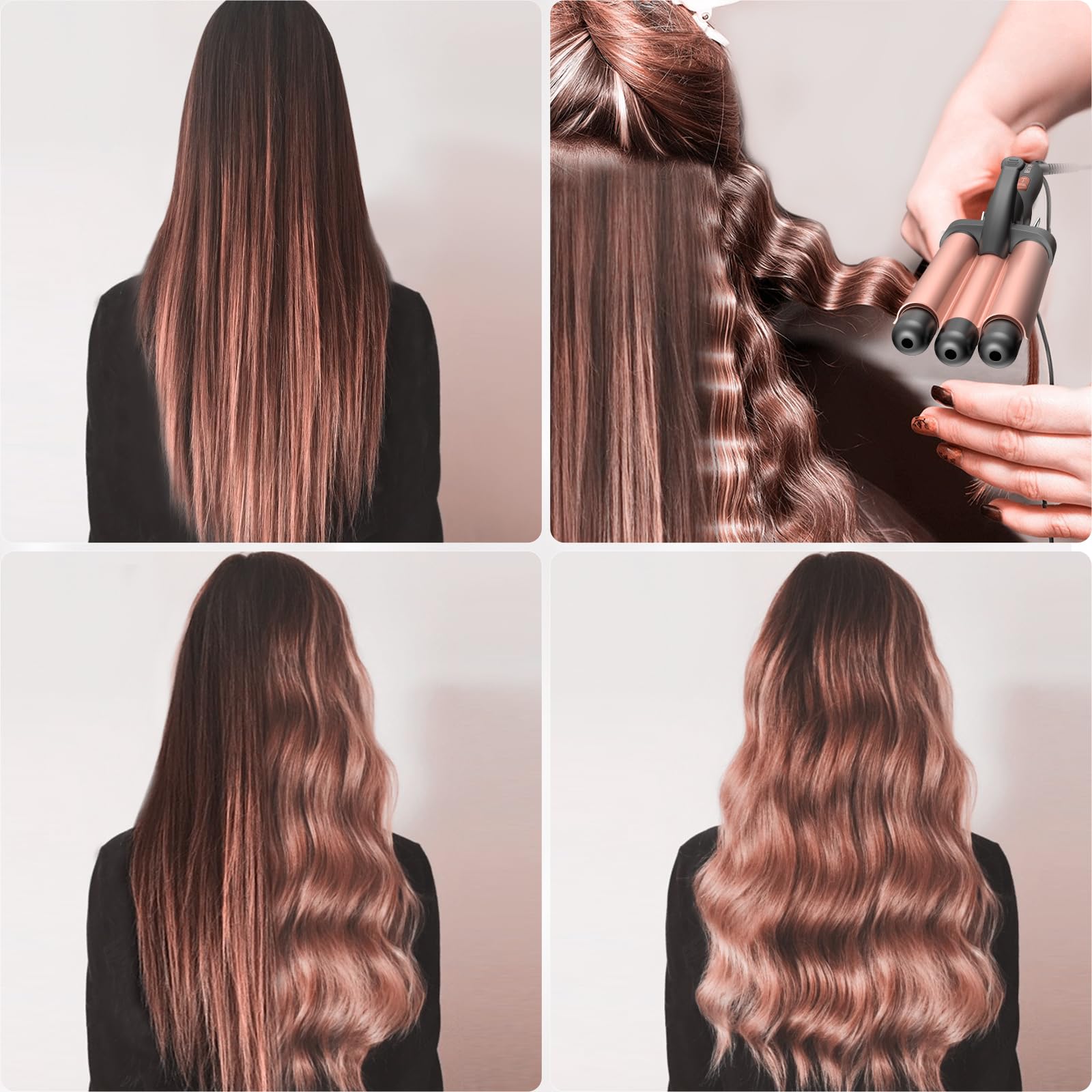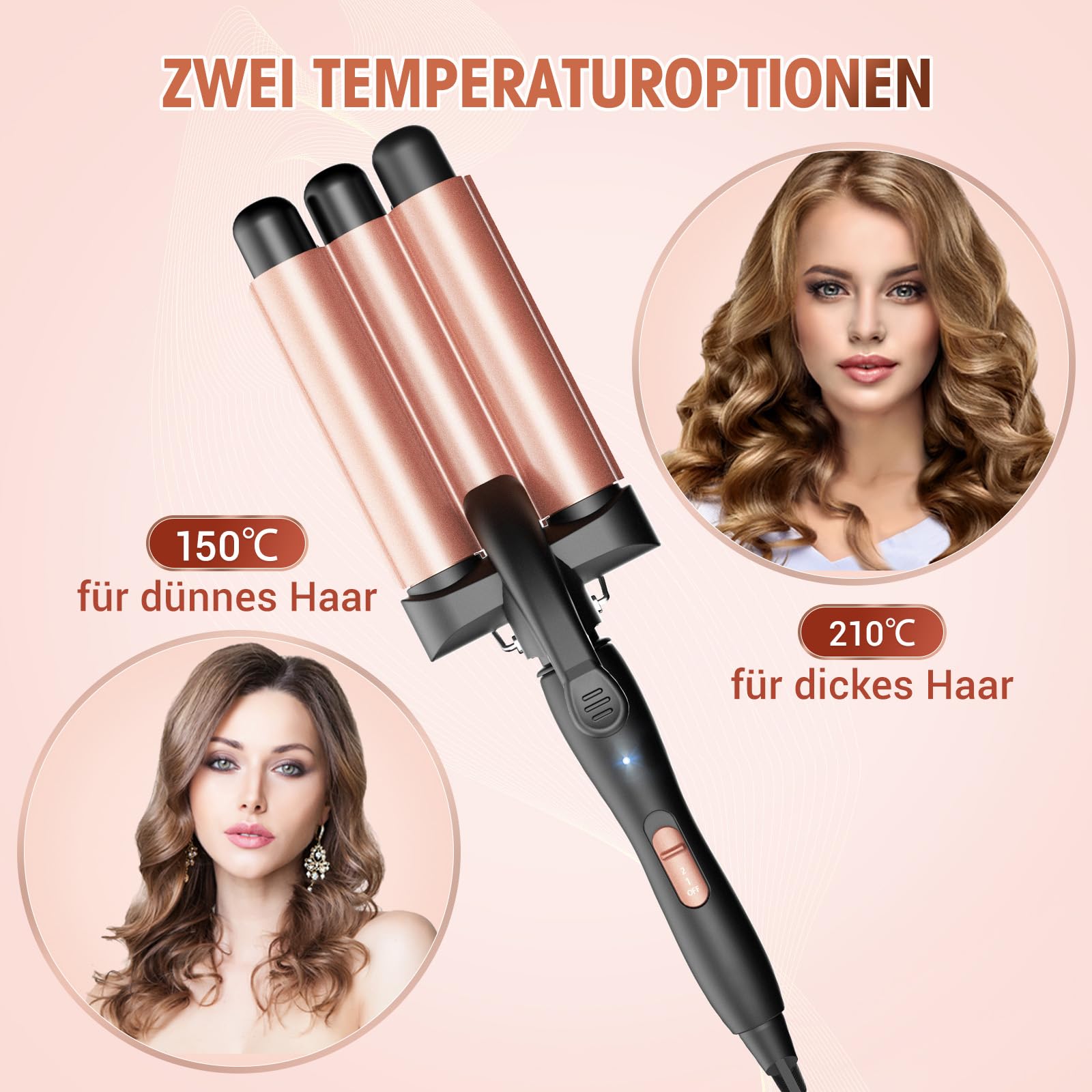 Lokówka do włosów, 3 beczki Beach Waves – lokówka falista, regulowana, szybkie podgrzewanie włosów