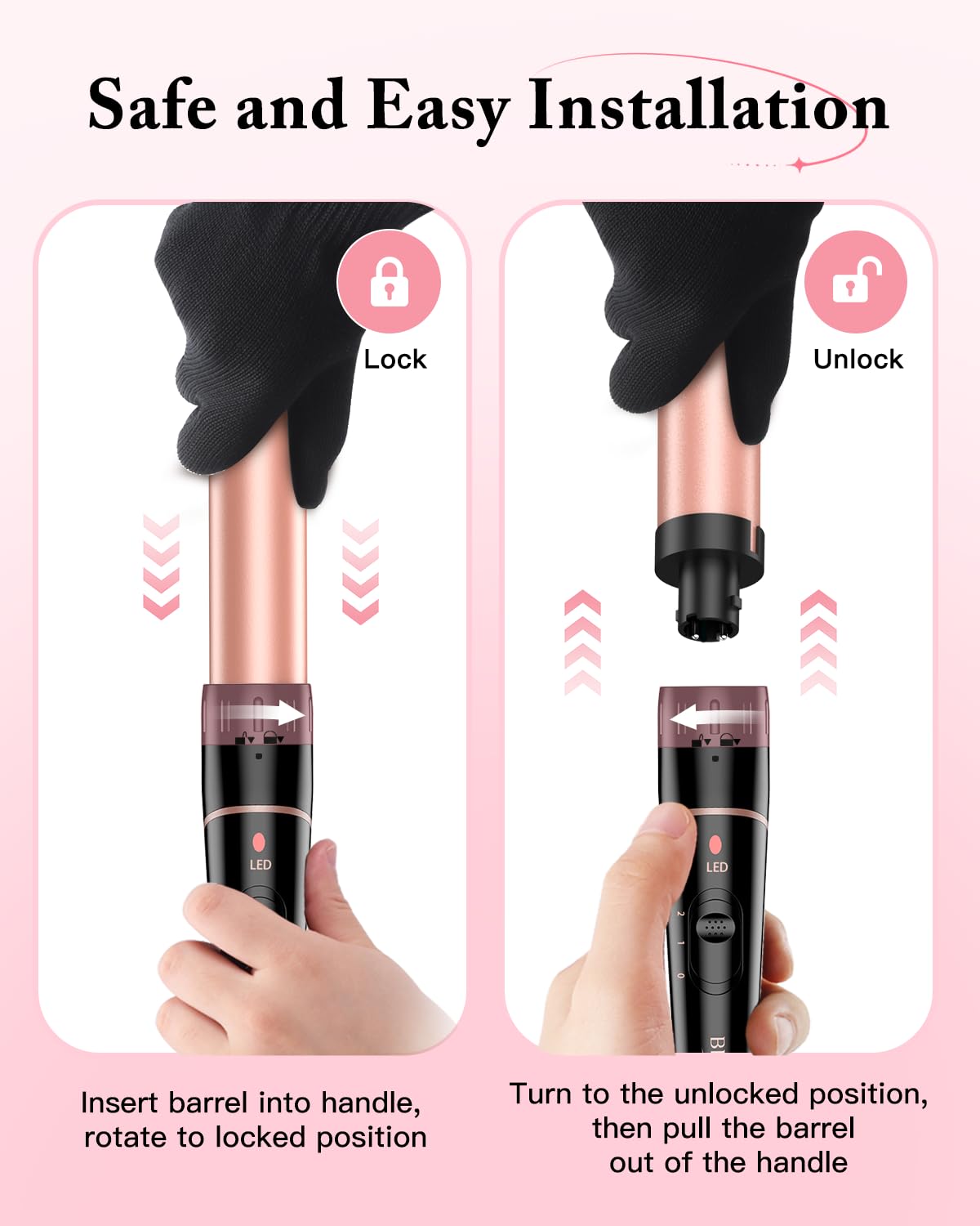 ✅ 【Bezpieczna i łatwa: 【Bezpieczna i łatwa obsługa】Zestaw lokówek do włosów opiera się na doświadczeniach klientów, a lokówka jest mocno zablokowana blokadą obrotową, aby poprawić wydajność pracy lokówki. Powłoka ceramiczna jest przyjazna dla środowiska, nietoksyczna, izolacja nie wytwarza elektryczności statycznej. Wyłąc