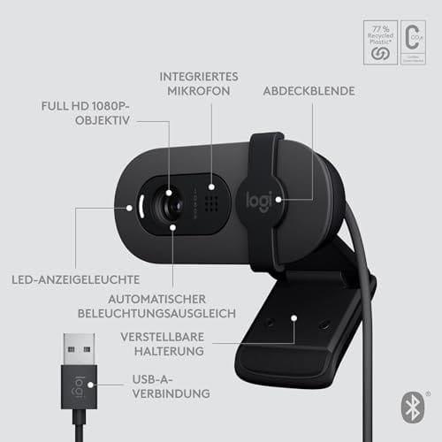 ✅ Doskonały stosunek ceny: Doskonały stosunek ceny do jakości: korzystna cenowo kamera internetowa Brio 105 Full HD o rozdzielczości 1080p zapewnia wyraźny film, naturalny efekt w filmach dla suwerennej prezentacji pracowników na spotkaniach