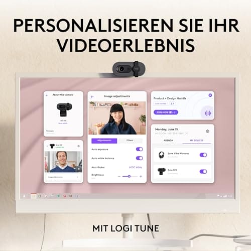 ✅ Dostosowywanie za pomocą: Dostosowywanie za pomocą Tune: Dzięki bezpłatnej aplikacji Logi Tune (1) pracownicy mogą dostosować jakość obrazu do swoich preferencji i uczestniczyć w spotkaniach jednym kliknięciem