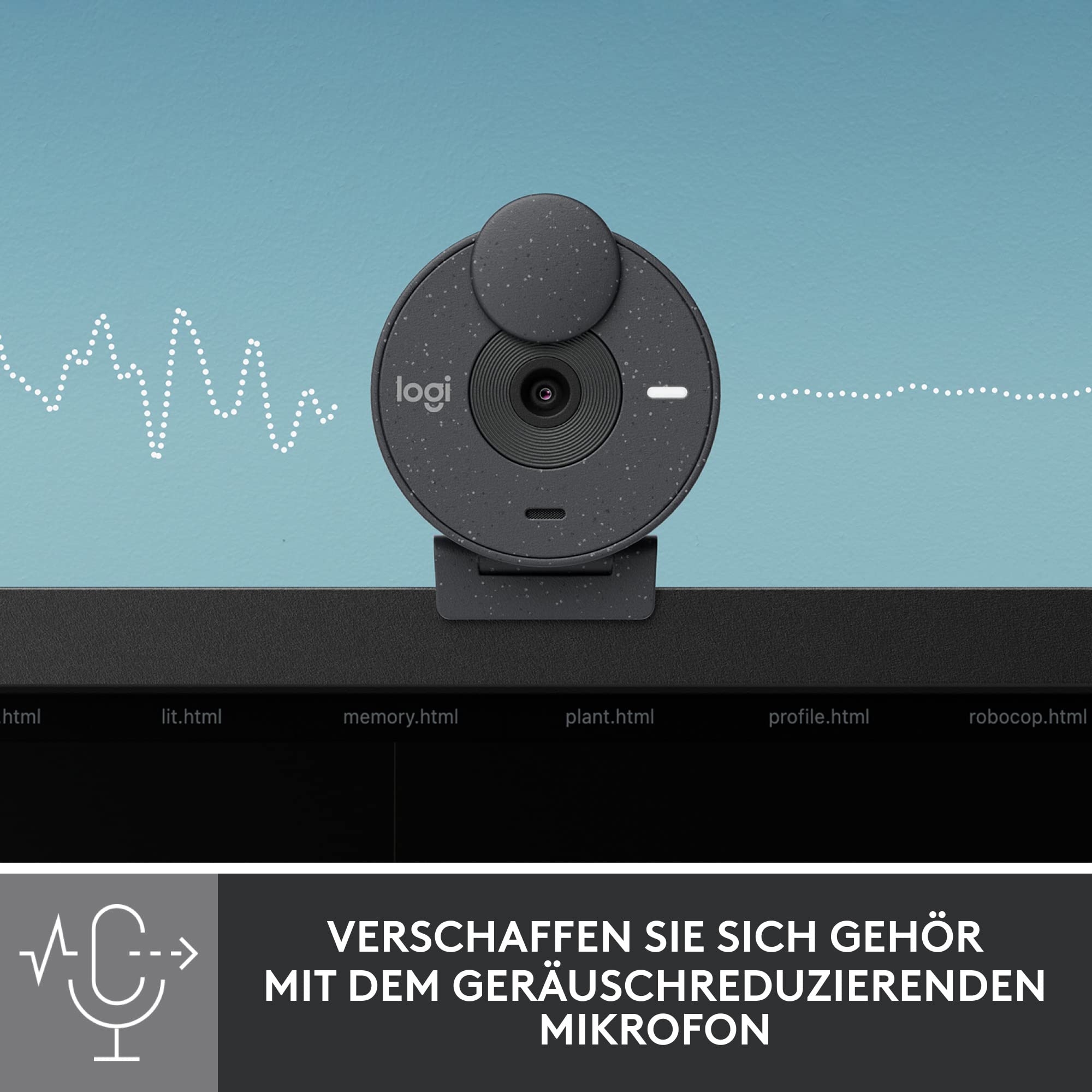 Logitech Brio 300 Full HD Kamera Internetowa z Osłoną, Mikrofonem z Redukcją Szumów, USB-C, Certyfikowana dla Zoom, Microsoft Teams, Google Meet, Auto Korekcja Światła – Grafit