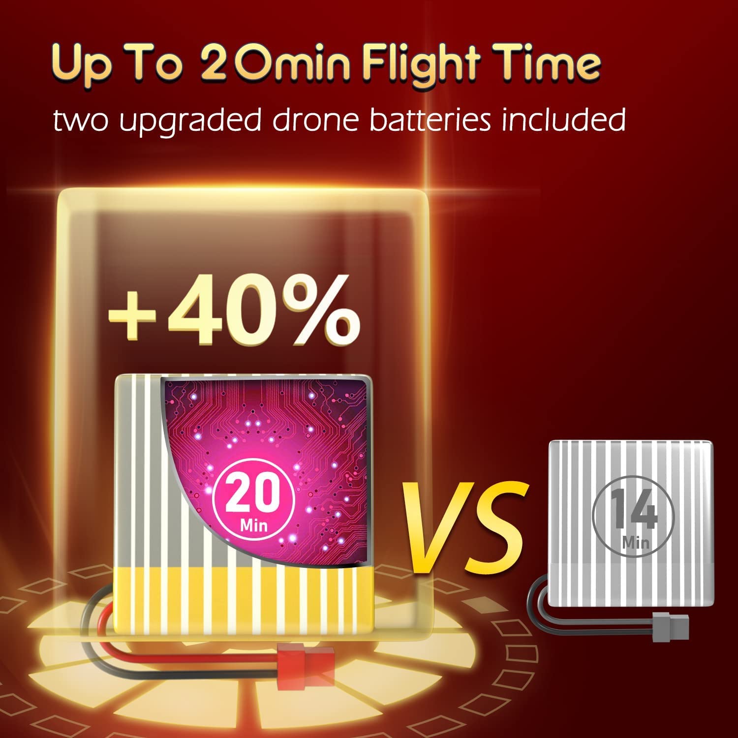 🔥 【Czas lotu: 🔥 【Czas lotu do 20 minut】 – Ten dron dziecięcy jest wyposażony w dwa ulepszone baterie. Całkowity czas lotu może wynosić do 20 minut, podczas gdy inne podobne drony to tylko 14 minut. Czas lotu jest zwiększany o 40%.