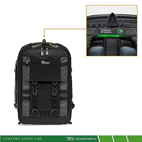 Lowepro Pro Trekker BP 350 AW II,Outdoor Camera Bag,Camera Backpack with Recycled Fabric,Pasuje do 15″ Laptop lub tablet,MaxFit Dividers,Weatherproof Cover, Mirrorless or DSLR Camera Case,Black or