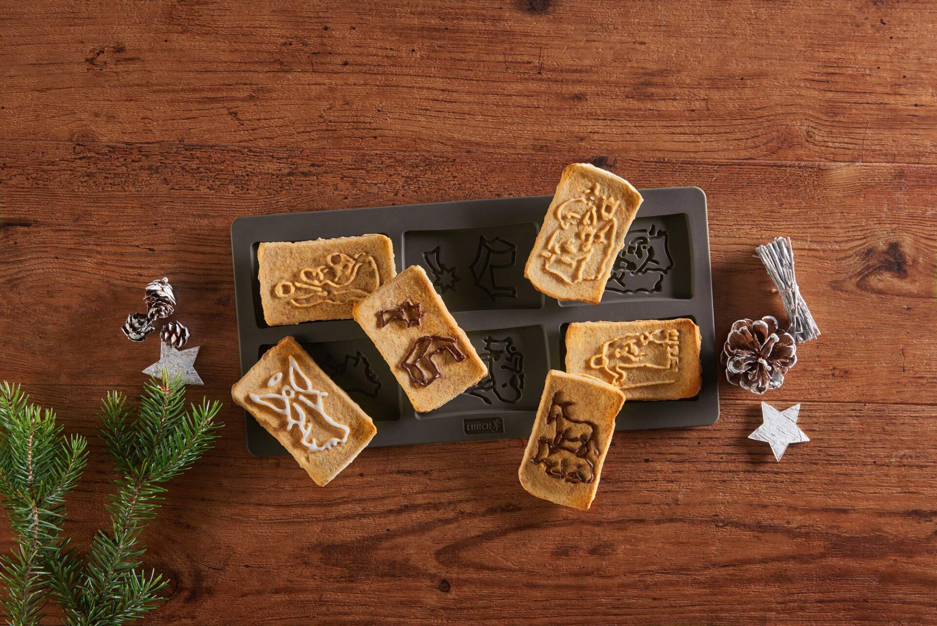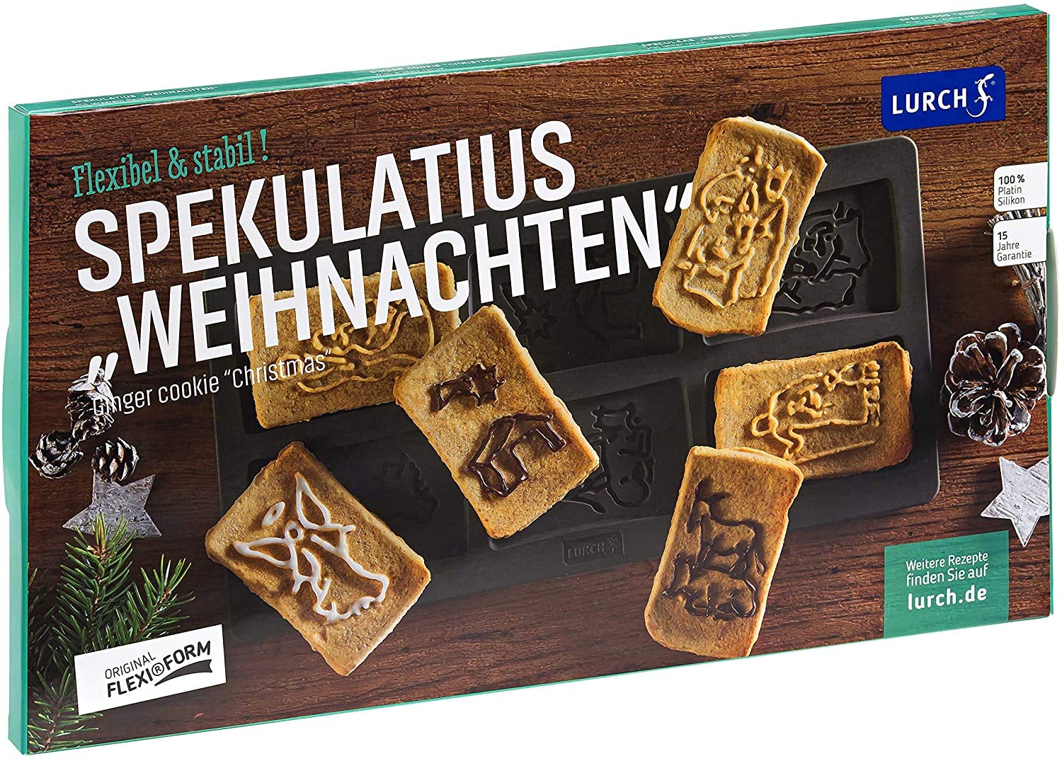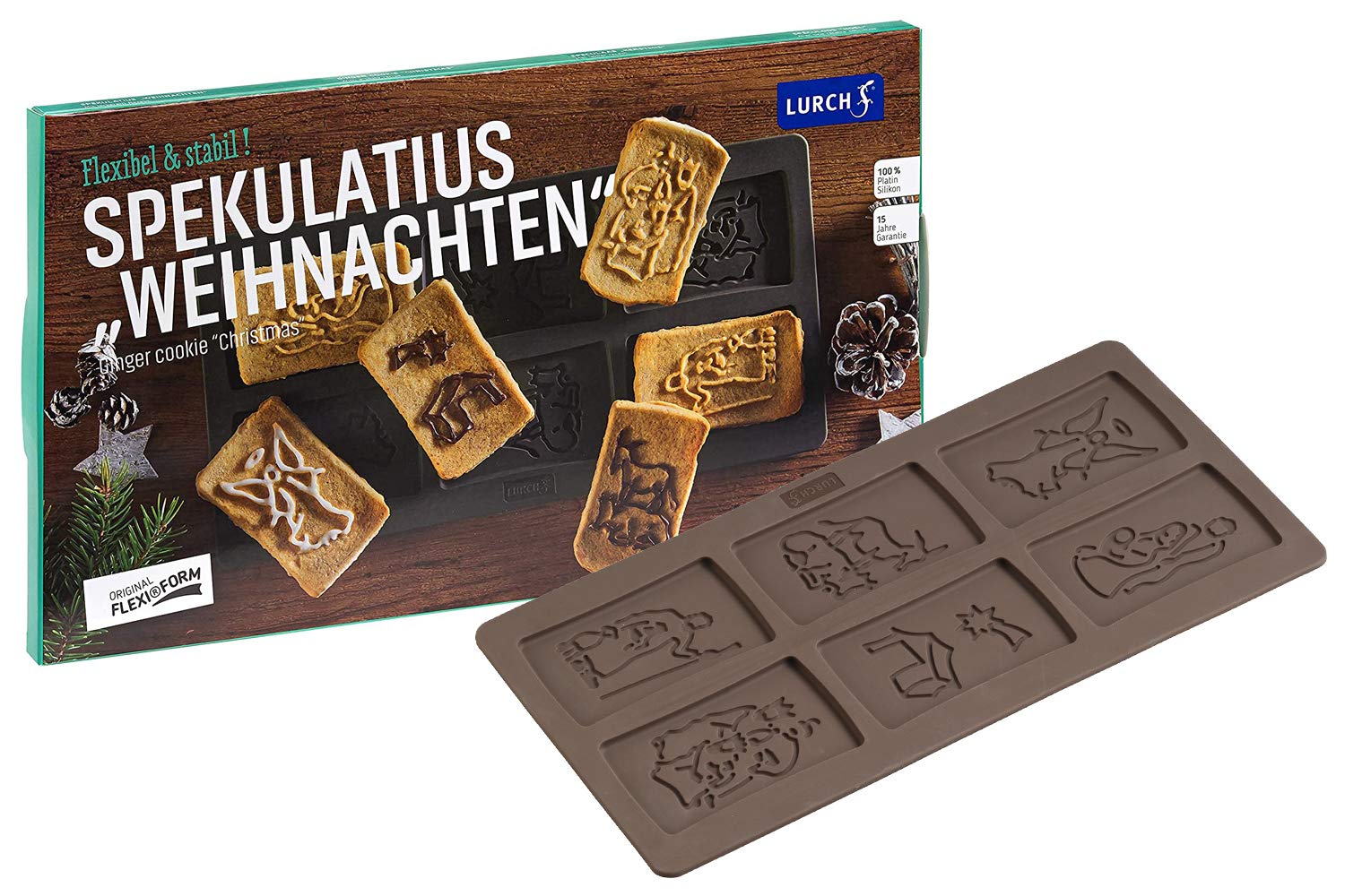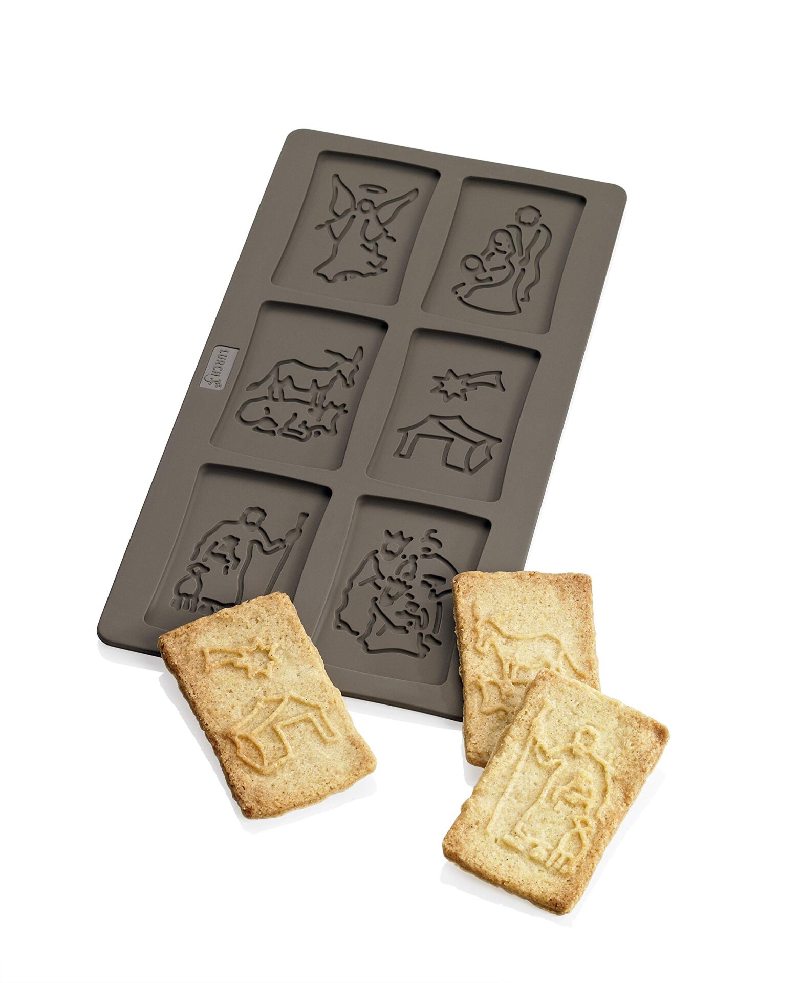Lurch 65019 FlexiForm „Boże Narodzenie” is a unique and festive baking mold that allows you to create six intricately detailed speculoos cookies with nativity scene motifs. Made from 100% BPA-free silicone, this brown mold is not only safe for food contact but also incredibly flexible and durable.