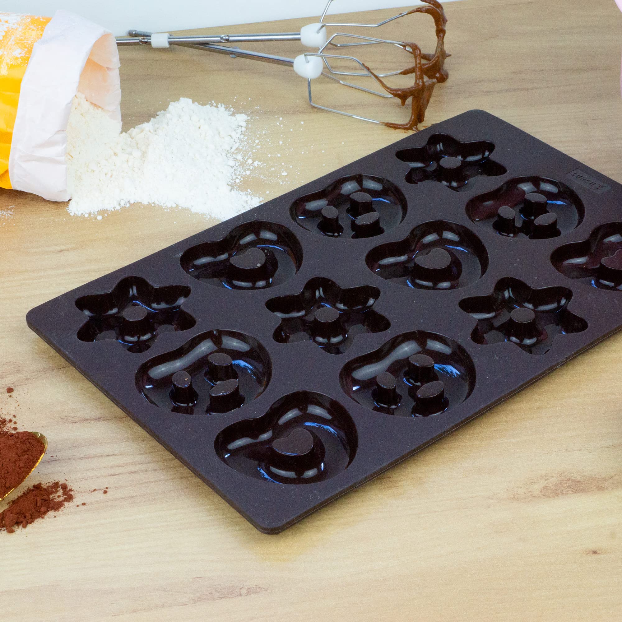 LURCH FlexiForm forma do pieczenia mini pierników, bruków, serc i gwiazd, platynowy silikon premium, 20 x 30 cm