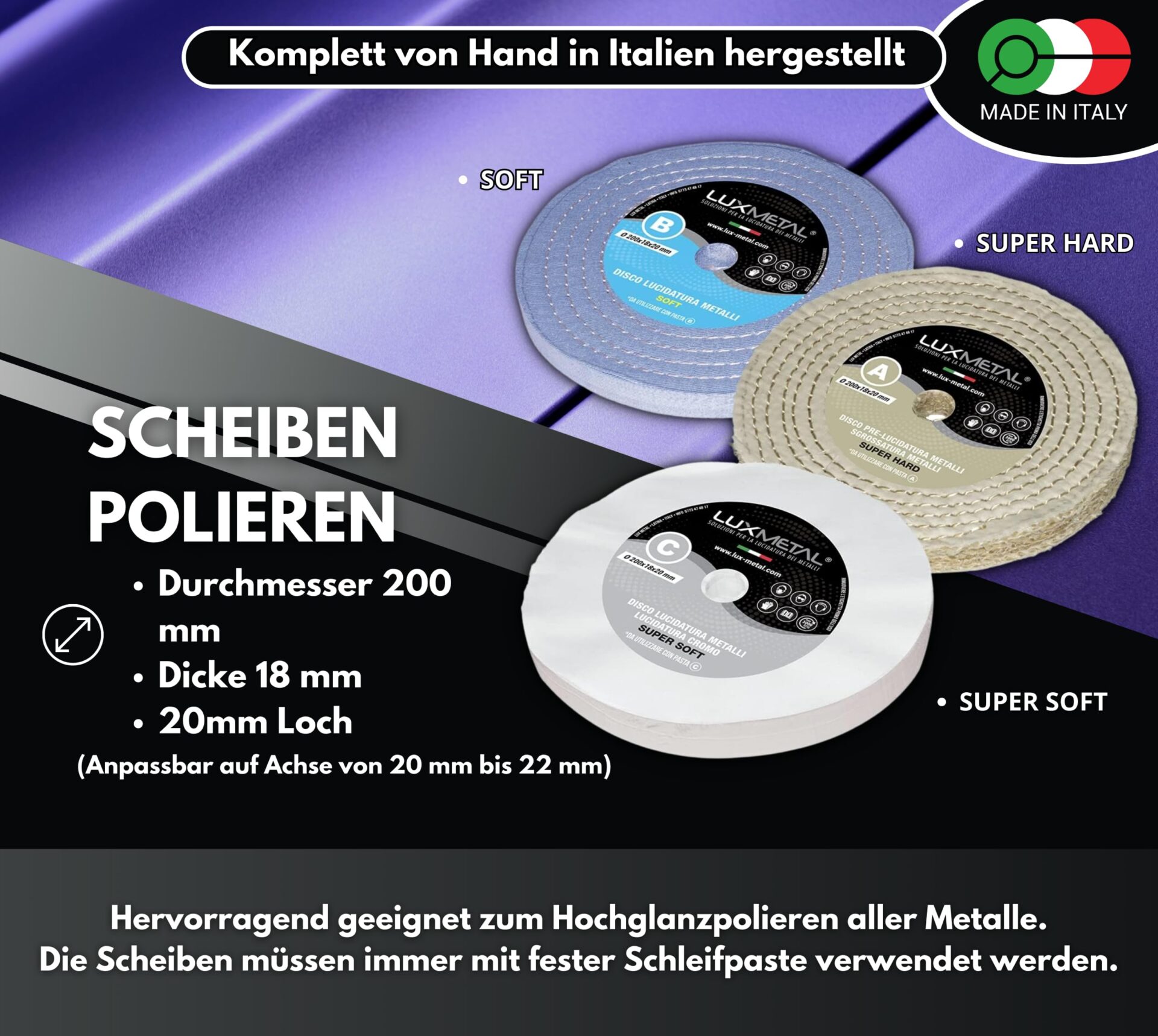 Zestaw 3 tarcza polerska 200 mm Lux Metal to doskonałe narzędzie do polerowania różnych powierzchni, takich jak stal nierdzewna, mosiądz, miedź, brąz, żelazo, drewno, plastik i wiele innych. Dzięki zastosowaniu wysokiej jakości sizalu i bawełny, tarcze te zapewniają doskonałe efekty polerowania, eliminując tlenek aluminium i inne zanieczyszczenia z powierzchni.