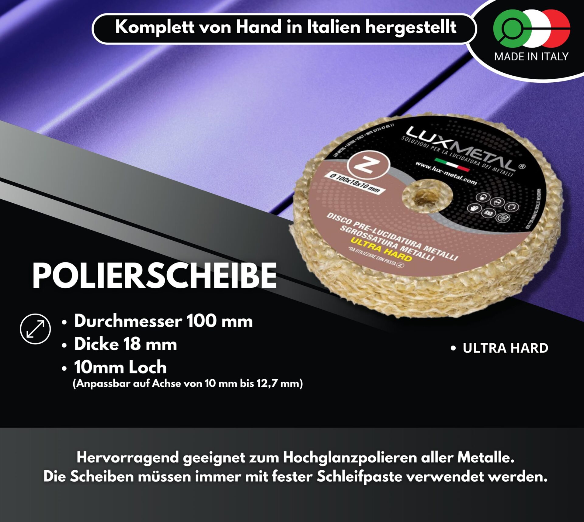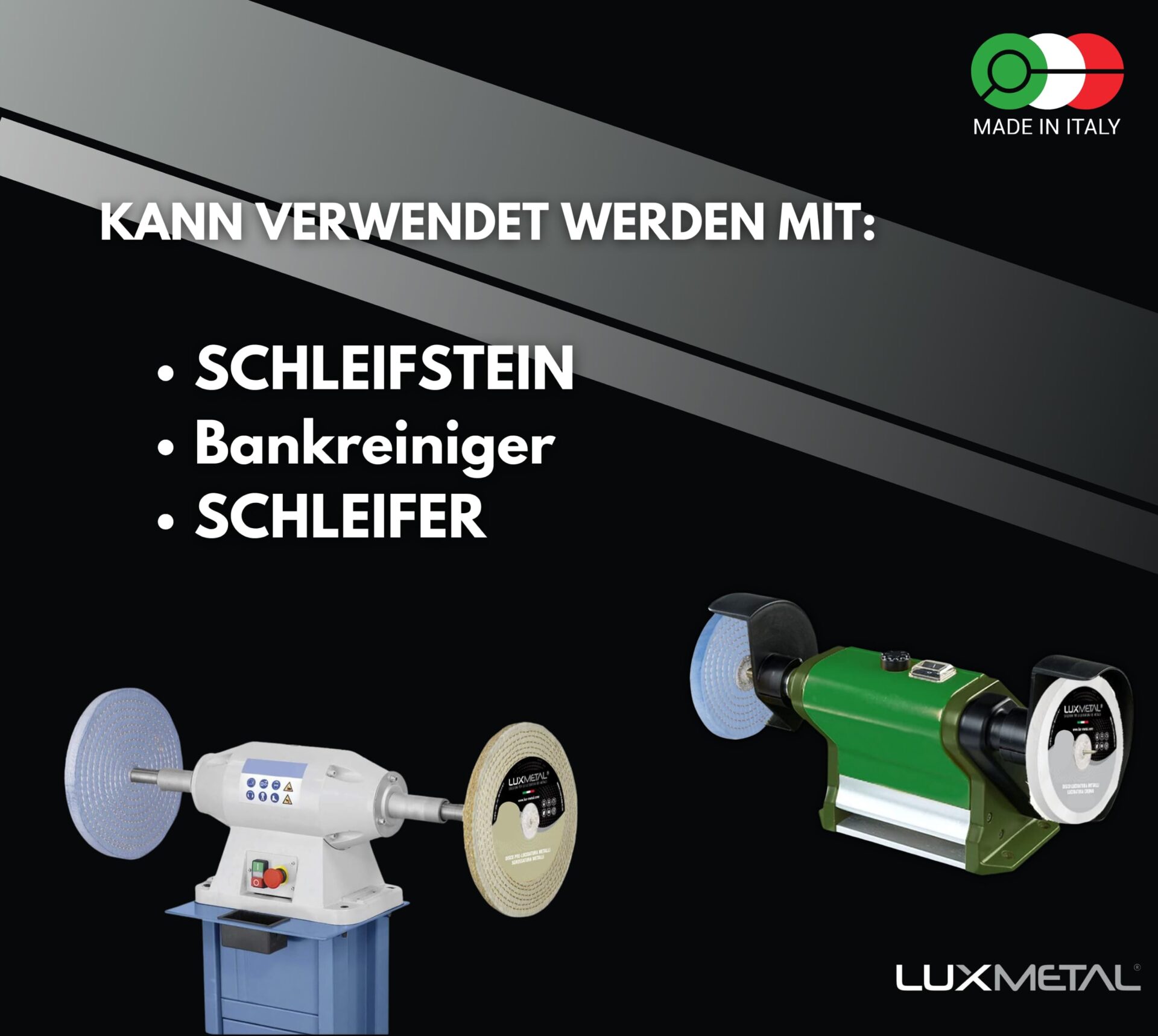 Dzięki zastosowaniu szałwi czystego Lux Metal Z, tarcza zapewnia ultra twarde polerowanie zgrubne, co sprawia, że jest idealna do polerowania aluminium, stali nierdzewnej, mosiądzu, miedzi, brązu i żelaza. Dzięki temu narzędziu można szybko i skutecznie przywrócić blask i połysk metalowych elementów, co sprawia, że wyglądają one jak nowe.